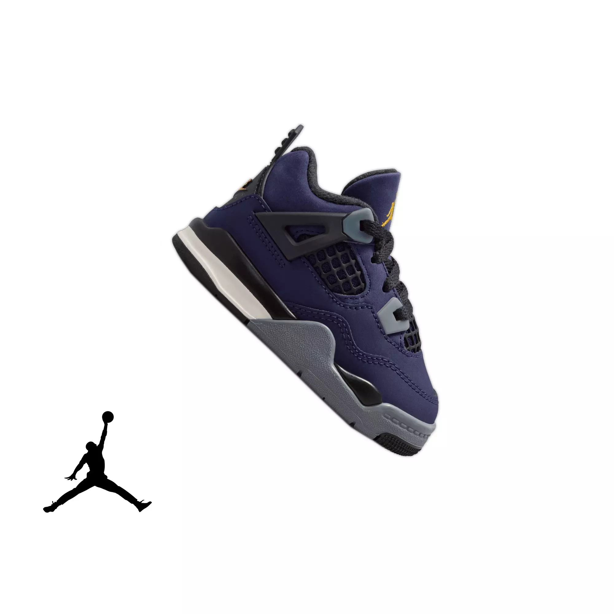 This Jordan 4 Retro "Imperial Purple" Toddler Kids' Shoe pays homage to those moments in quintessential Jordan colors. The deep Imperial Purple upper is rendered in premium nubuck, with hits of University Gold tying the look together.Features
