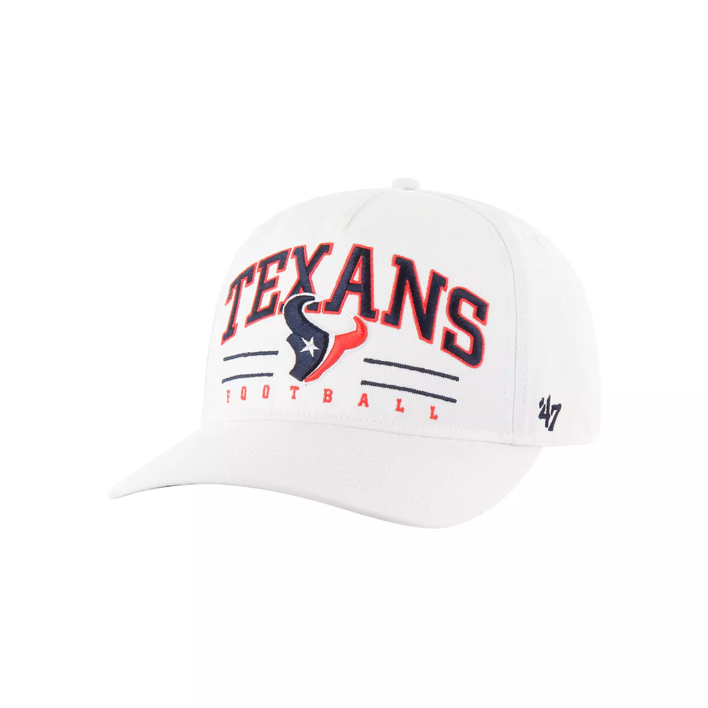 A headwear staple, the '47 Houston Texans Roscoe Hitch Snapback Cap-White pairs vintage team styling with everyday comfort. Raised Texans embroidery and a high-crown, structured profile deliver a bold, throwback look that stands out at the stadium, watch parties, and daily wear.An adjustable snapback closure customizes the fit, while sturdy panels and embroidered eyelets add lasting shape and breathability. Easy to pair with jerseys or hoodies, this timeless cap keeps your Texans pride front and center from kickoff to commute.