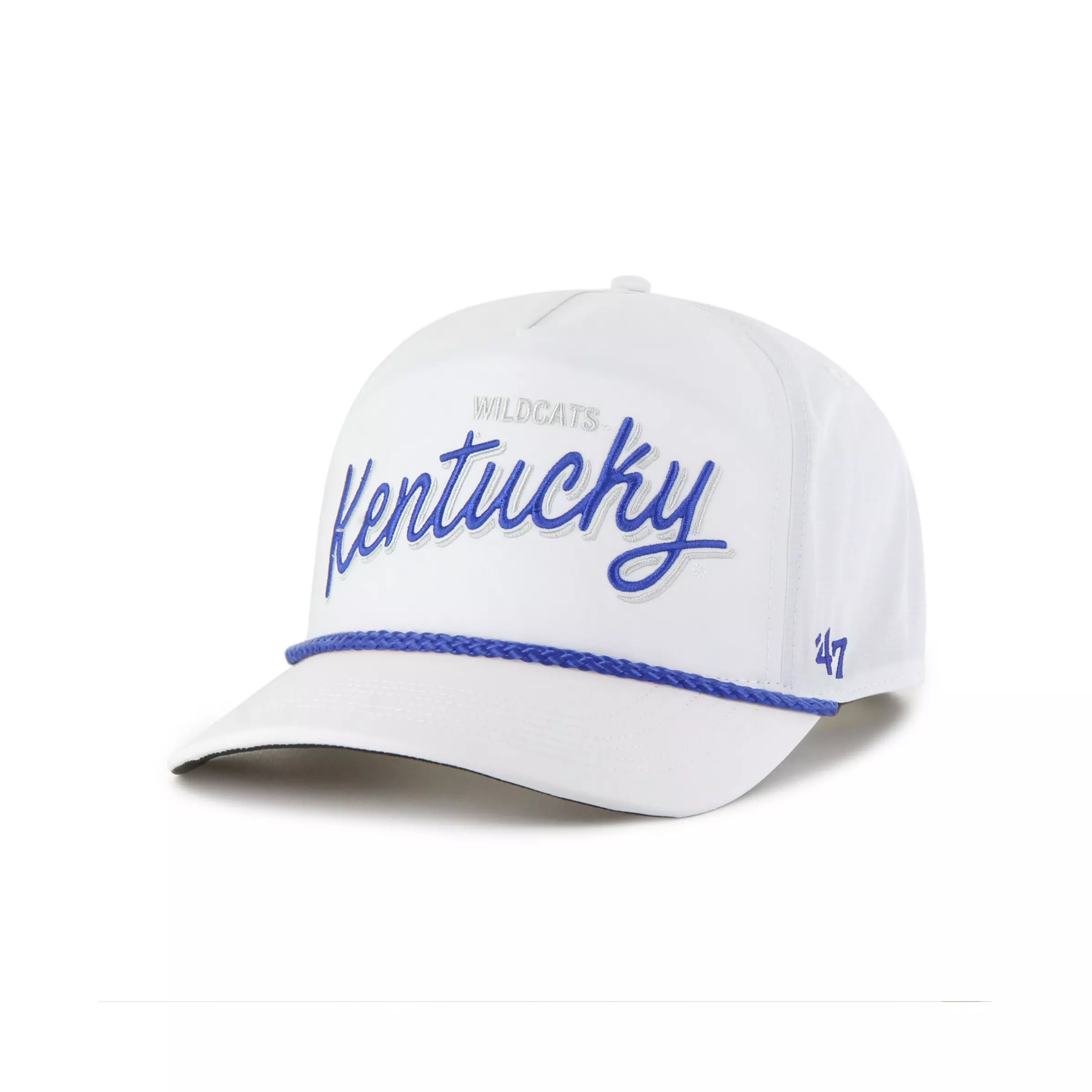 Show your team pride in the ’47 Kentucky Wildcats Fairway Hitch Snapback Hat-White. This vintage-inspired cap features a high crown with structured panels, a curved visor, and crisp team embroidery that stands out on game day or any day.A classic snapback closure lets you fine-tune the fit, while the throwback rope detail adds timeless style that pairs easily with your favorite Wildcats gear. Comfortable, durable, and ready for the season, it’s an easy grab for tailgates, watch parties, and everyday wear.