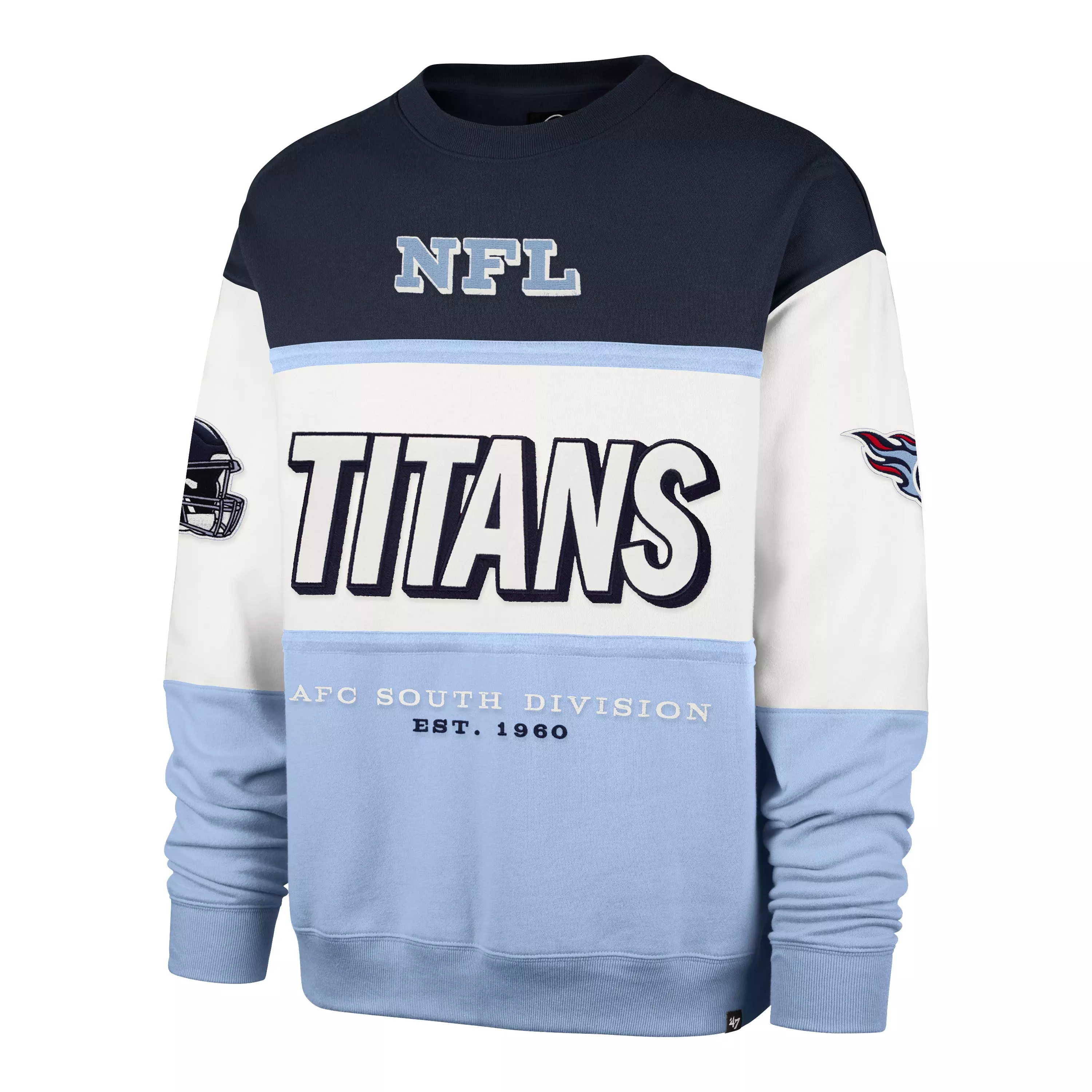 Stay warm and show off your Titans pride with the '47 Tennessee Titans Maximalist Crew Fleece Sweater-Navy. Designed for fans who need comfort and style all in one, this crew neck combines soft fleece fabric with a bold Titans graphic to keep you cozy while repping your favorite squad. Whether you're cheering from the stands or lounging at home, this is your go-to layer for game day and beyond. Grab yours today!Features