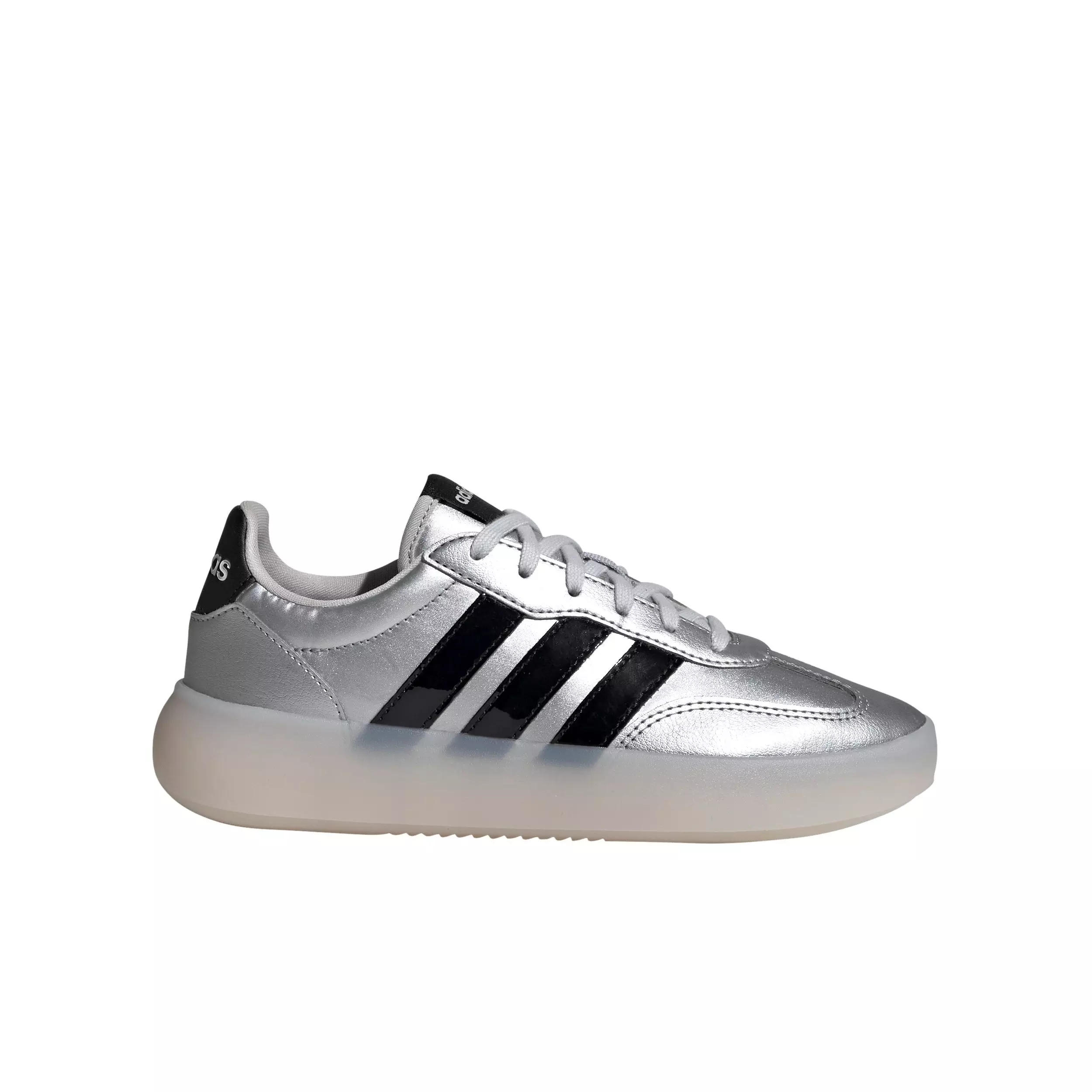 Classic meets contemporary in the adidas Barreda Decode "Silver Metallic/Core Black/Chalk White" Preschool Boys' Shoe, designed for young trendsetters with a spirit for adventure. The metallic upper gives a sleek modern look that stands out in the playground, at school, or on the street. adidas 3-Stripes add a touch of sporty chic, alongside logos on the heel and shoe tongue. Parents will appreciate the non-marking cupsole for its fusion of comfort, style, and durability. Whether it’s a chilled outing or boisterous play date, these shoes are built to match your kids’ energy.Features