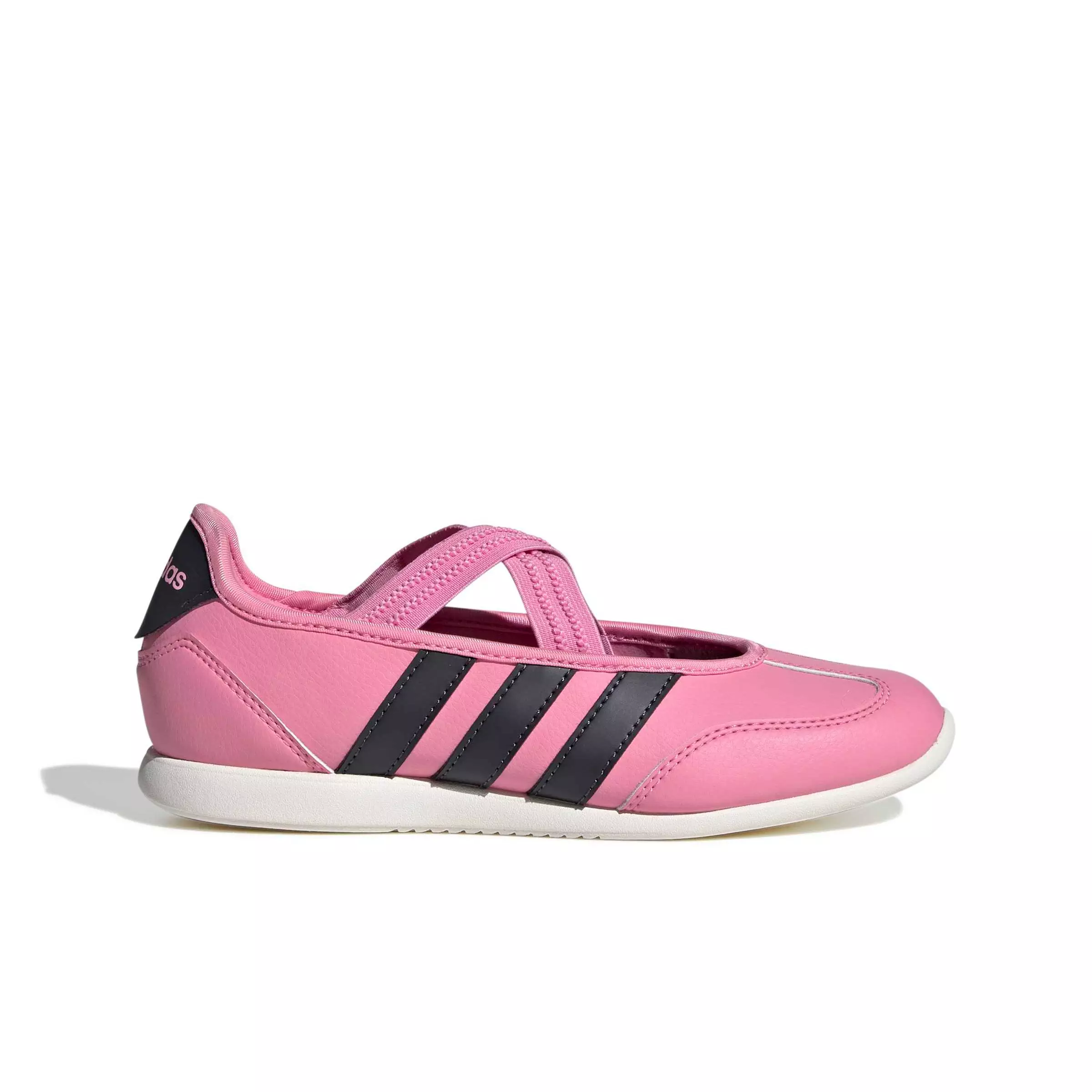 The adidas Barreda Mary Jane "Bliss Pink/Carbon/Off White" Grade School Girls' Shoe are designed for young adventurers who love to explore. With a sleek ballerina style, the shoes offer a unique blend of elegance and functionality. The elastic strap provides easy step-in, while the rubber outsole is low to the ground, offering reliable grip and stability for active days. The adidas branding adds a touch of sporty flair, making these shoes suitable for any occasion. With these Mary Jane shoes, kids can enjoy the freedom to move and play with confidence and style.Features