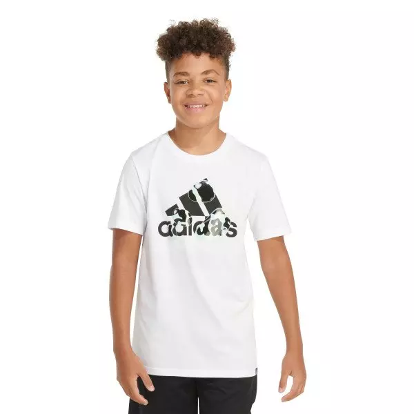 adidas Big Boys' Chrome Logo TeeGive his sporty look a little bit of edge with this adidas Big Boys' Light Chrome Logo Tee. The big repeating graphic is printed for an artistic spin. Easy to wash and wear, it feels incredibly soft.