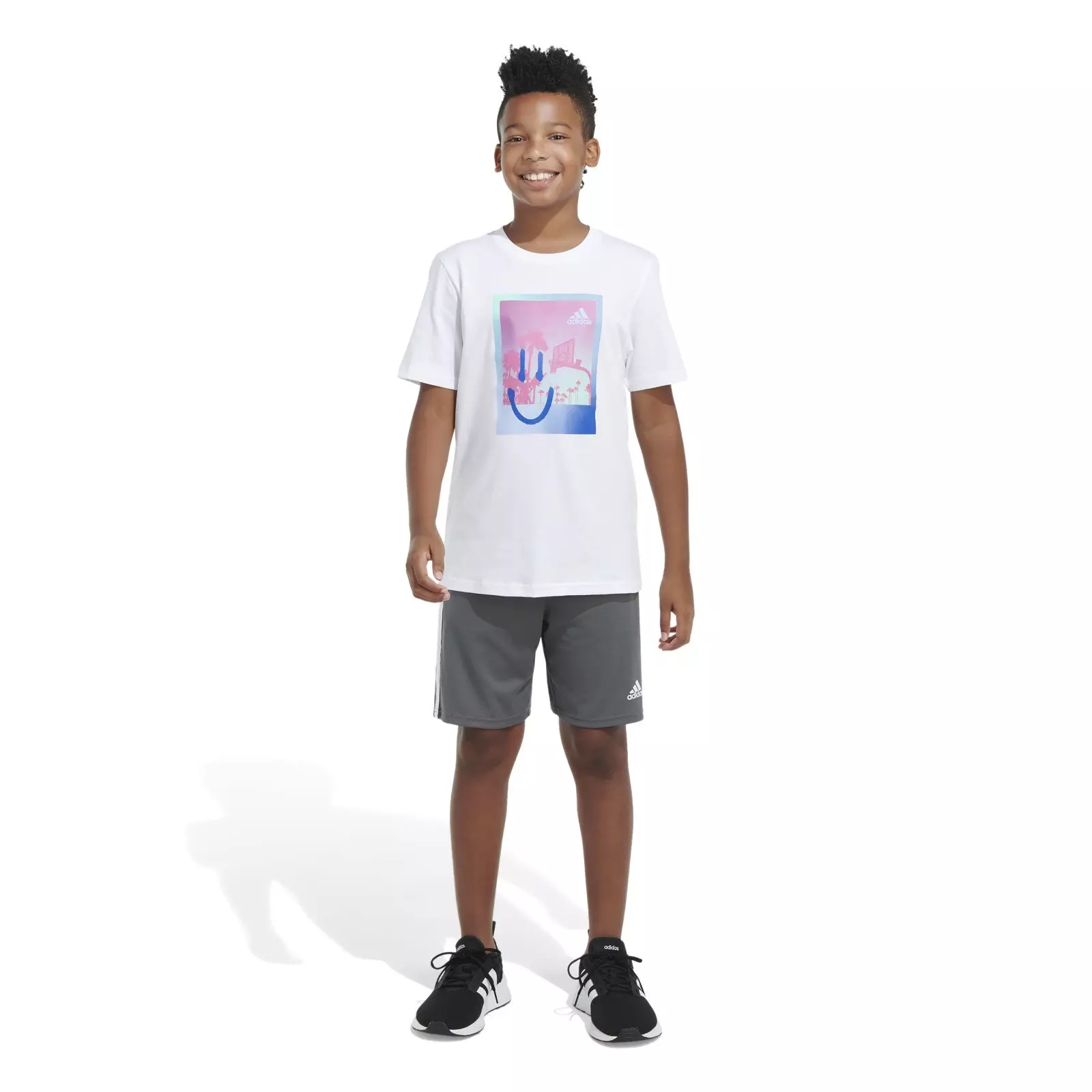 The adidas Big Boys' Sport Escape Tee keeps it simple with graphics in front. The soft cotton fabric feels comfortable all day.Features