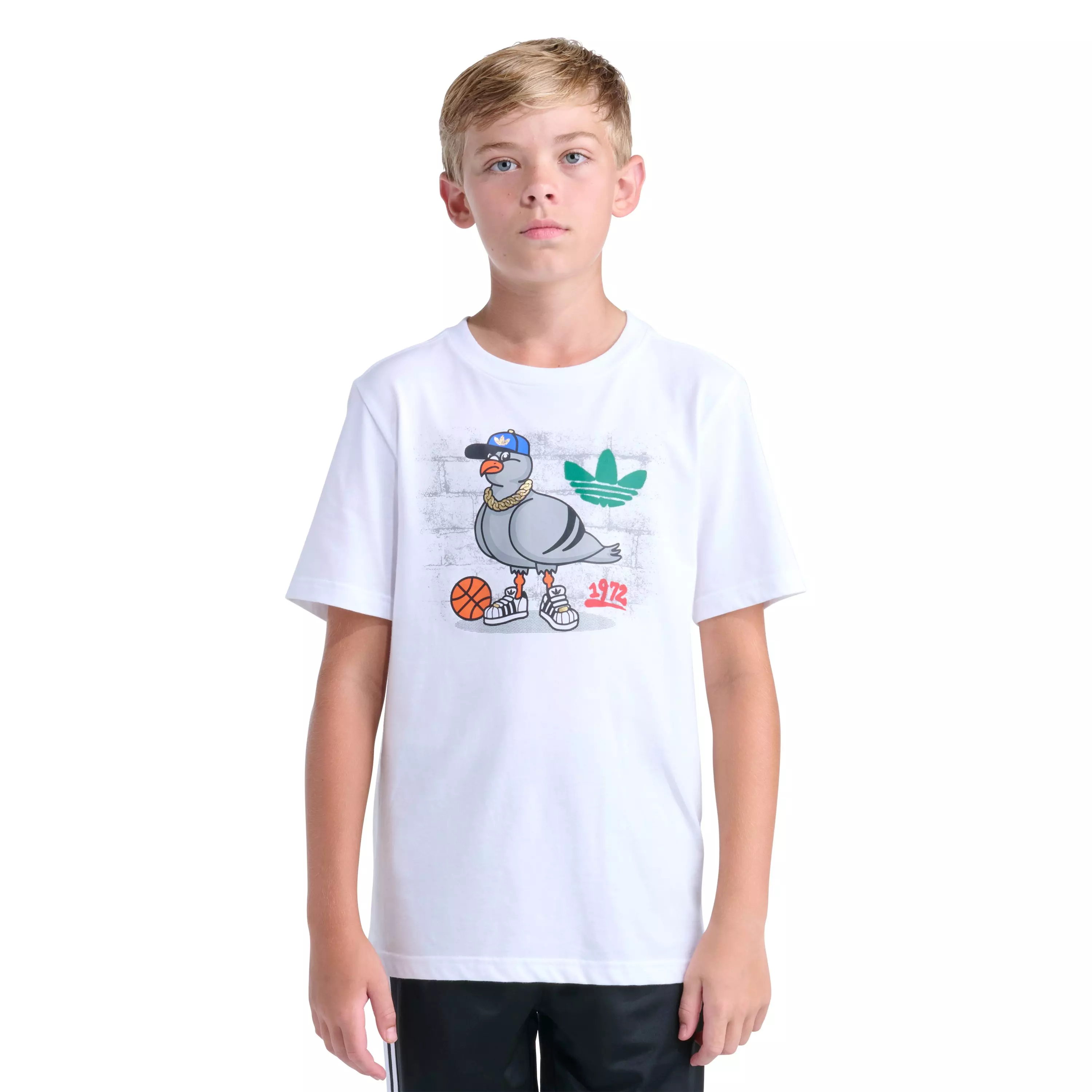 Energy finds its way into every moment, from playground sprints to after-school hangouts. This adidas Big Girls' Pigeon Tee keeps kids comfy and ready for whatever the day brings. With soft jersey fabric and a rib-knit crew neck, it feels soft against the skin while keeping its shape. The sport-themed print on the front with the adidas Originals Trefoil logo sparks imagination and adds playful boldness to their style. This is a tee that moves easily through playtime and practice, making it a go-to for active days and creative adventures.Features