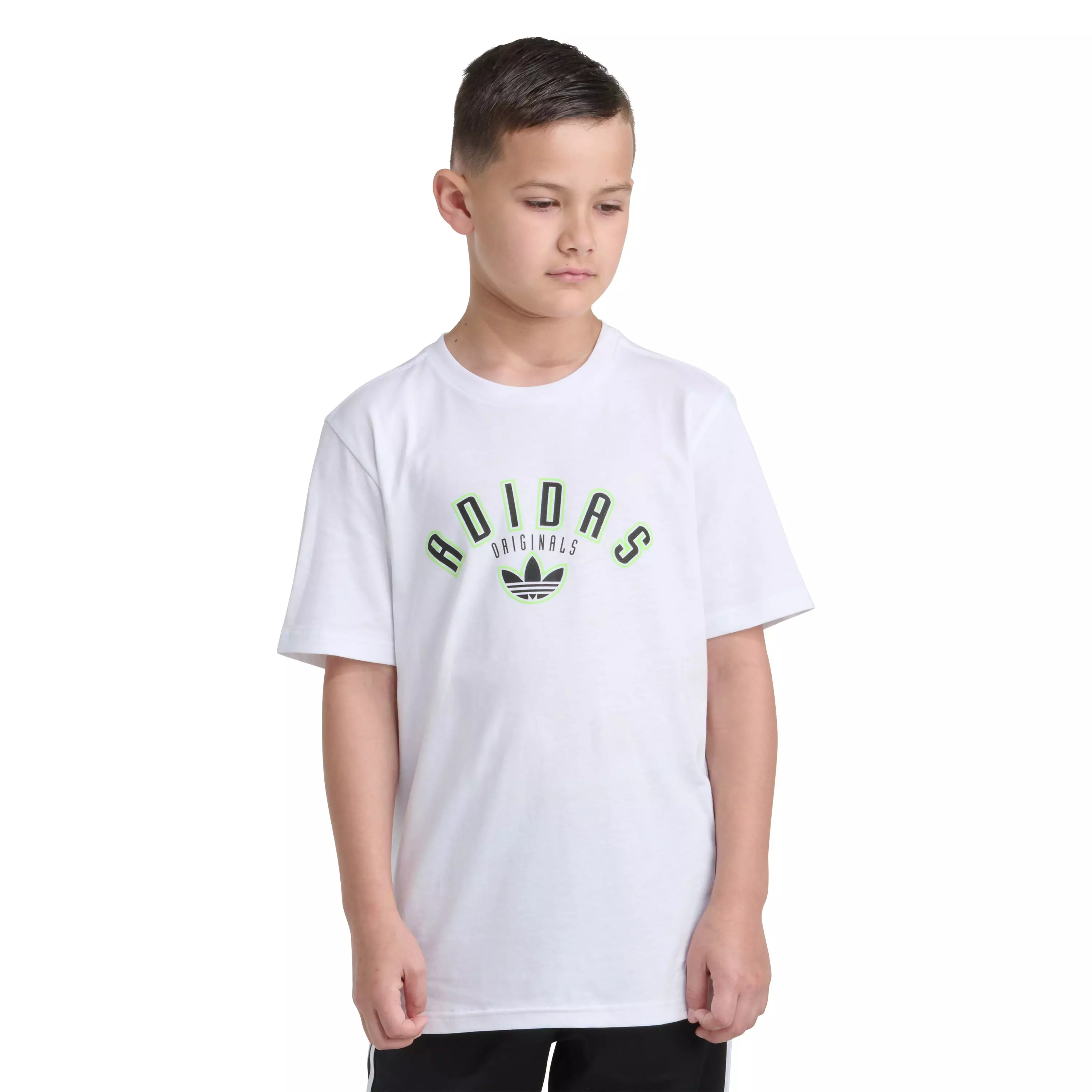 The adidas Big Kids' Logo Play Tee in White/Green lets young athletes step into the adidas Originals Teamgeist spirit. A bold logo with neon ink creates a textured 3D effect, adding playful energy to the look while standing out in motion.