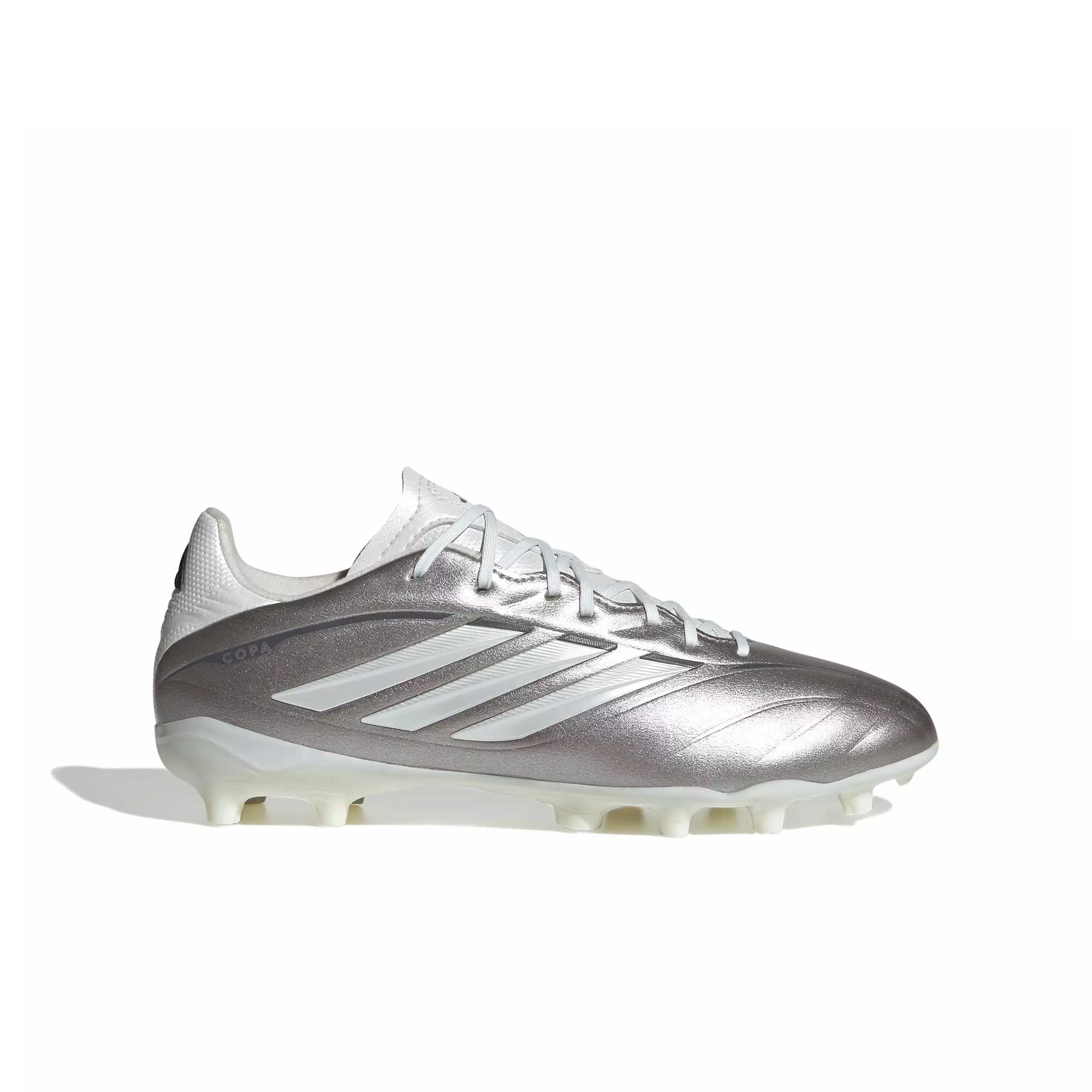 Our adidas Copa Pure IV League FG "Taupe Metallic/Zero Metallic/Night Metallic" Preschool Kids' Soccer Cleat are crafted for young players who want to experience both comfort and performance. Offering a modern classic design that prioritizes ball feel and fit, your child can focus on their play without distractions. The Fusionfeel technology combines softness with strategically placed padding, providing comfort and precision, along with 3D haptic prints and grip for precise control during play. Designed for firm ground, the outsole features semi-conical studs for traction and rotation, creating stability on dry natural grass. The padded floating tongue with a foam layer decreases lace pressure, providing additional comfort and breathability. adidas branding on the medial and lateral sides adds a touch of style, making our boots a confident choice for your young football enthusiast.Features