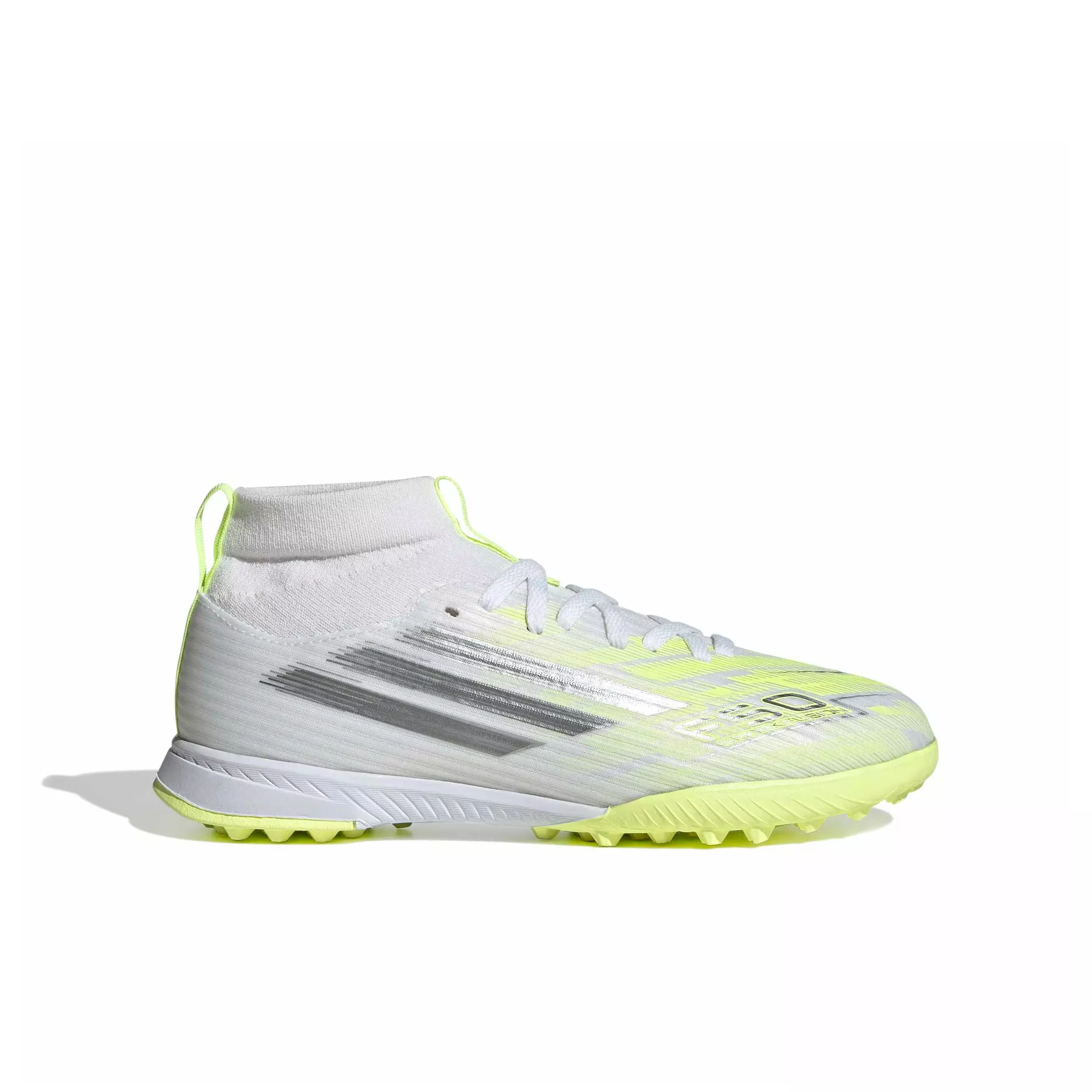 • adidas F50 Sparkfusion League Mid Cut Turf "White/Iron/Hi-Res Yellow" Preschool Kids' Soccer Shoe - WHITE/IRON/YELLOW