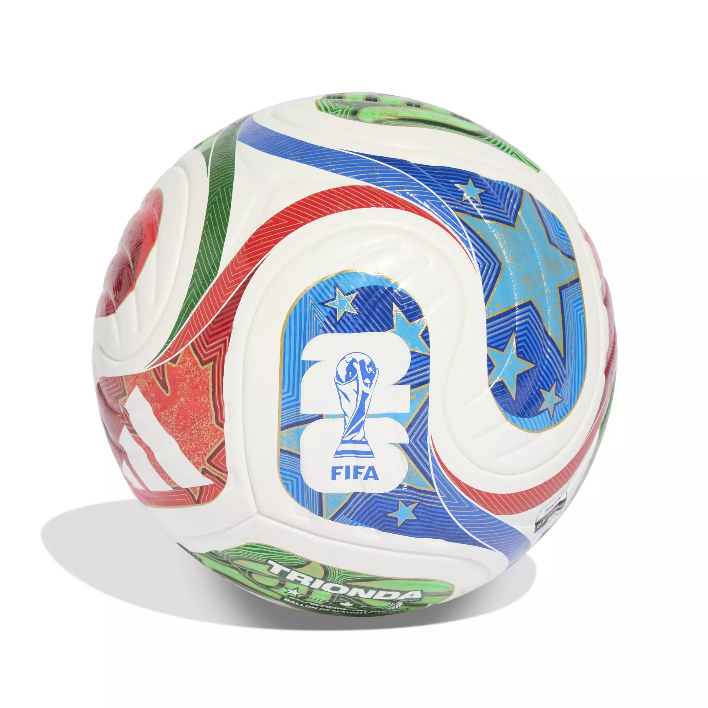 A spectacular sight first seen at sporting venues across the Americas, the iconic "la ola" wave inspires the flowing, four-panel design of this adidas FIFA World Cup 26™ TRIONDA Pro Ball. The official football of the FIFA World Cup 26, it has a seamless surface with an eye-catching texture and strategically placed debossing for optimal precision and in-flight stability. Vibrant colours and bold national symbols represent the tournament's three host countries.Features