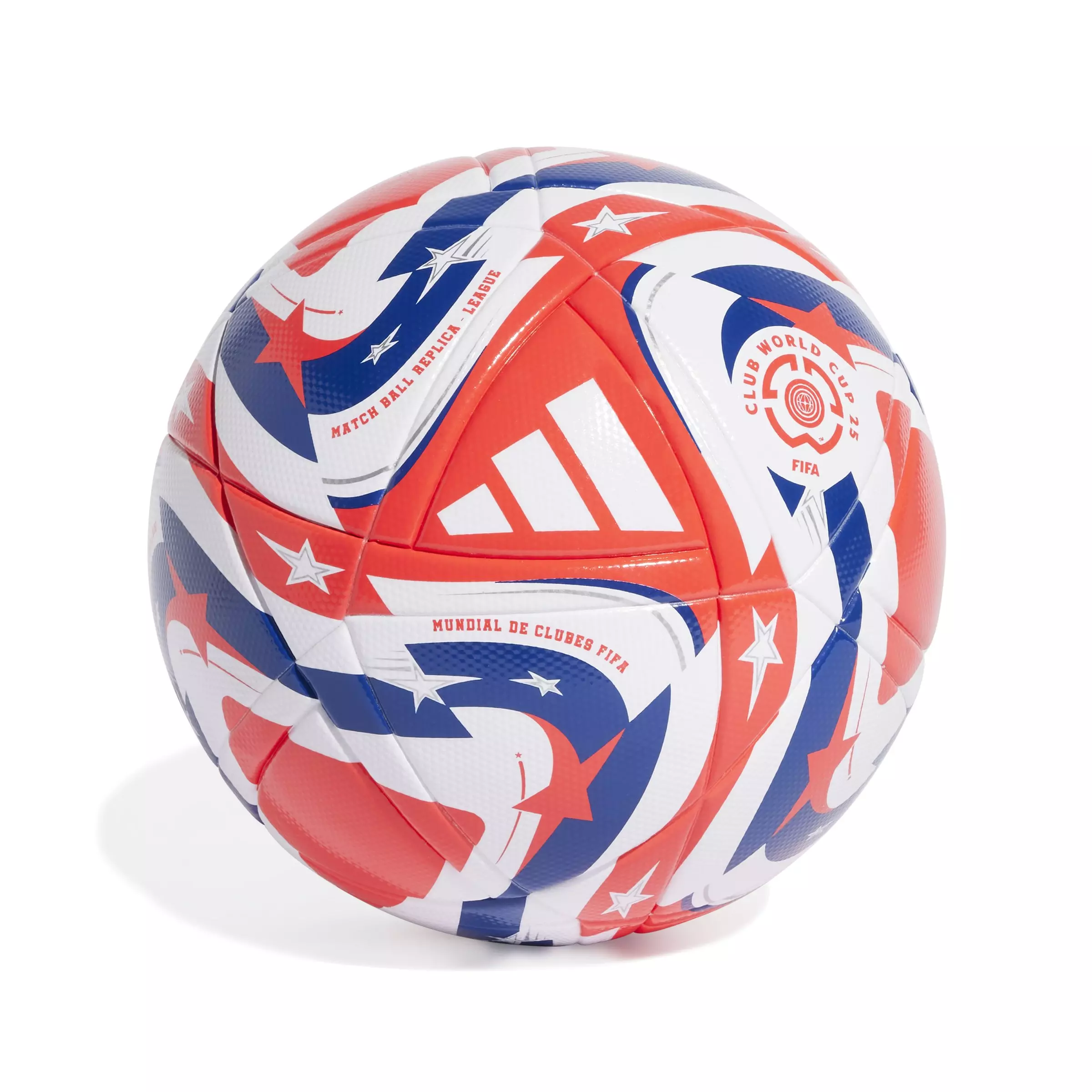 The adidas FIFA World Cup League Soccer Ball features a design inspired by waving flags draped in stars and stripes to celebrate the 2025 Club World Cup in the United States. It was created to enhance training and matches.