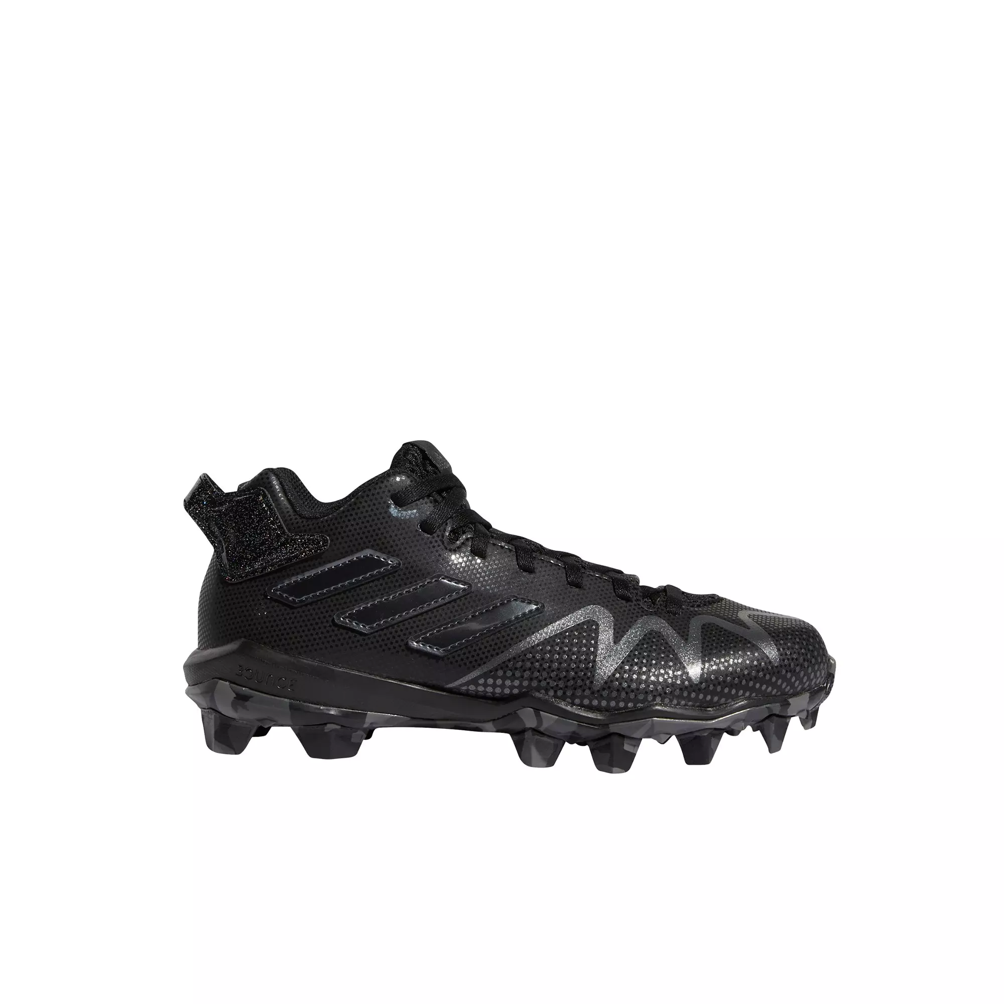 For the future American football star in your household, send them out in comfort and confidence in these adidas Freak Spark Mid "Core Black/Night Metallic" Preschool Boys' Football Cleats. With a snug-fitting upper for stability and the dependable traction of a lugged rubber outsole, they'll be ready to answer the call when the game is on the line. Graphics on the upper help them channel some big-play energy when their number gets called. Made in part with recycled content generated from production waste, e.g. cutting scraps, and post-consumer household waste to avoid the larger environmental impact of producing virgin content.