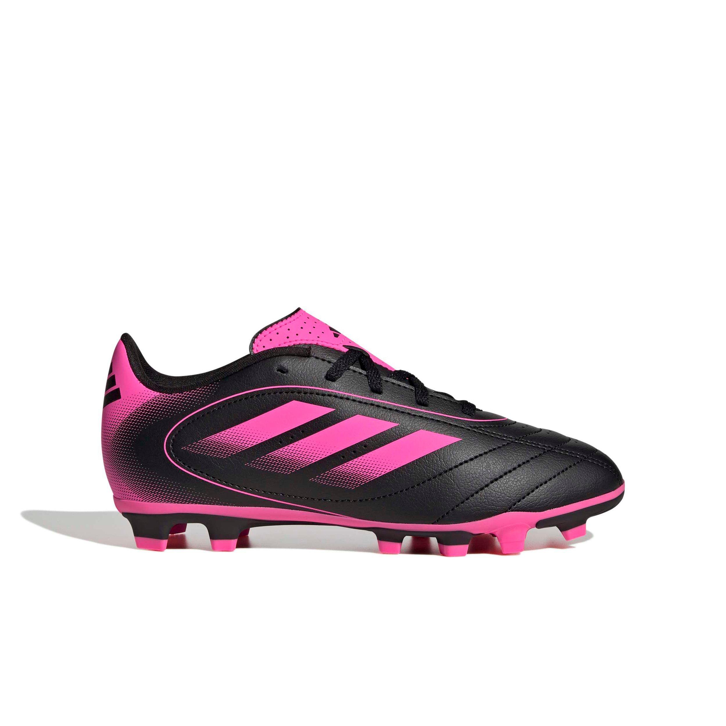 Pull on these adidas Goletto IX FG "Core Black/Lucid Pink/Core Black" Preschool Kids' Soccer Cleat and get ready to shine on the pitch. Their soft synthetic upper features padding and perforations in just the right places so you stay comfortable on the move. That versatile outsole keeps you quick on firm ground and artificial grass.Features