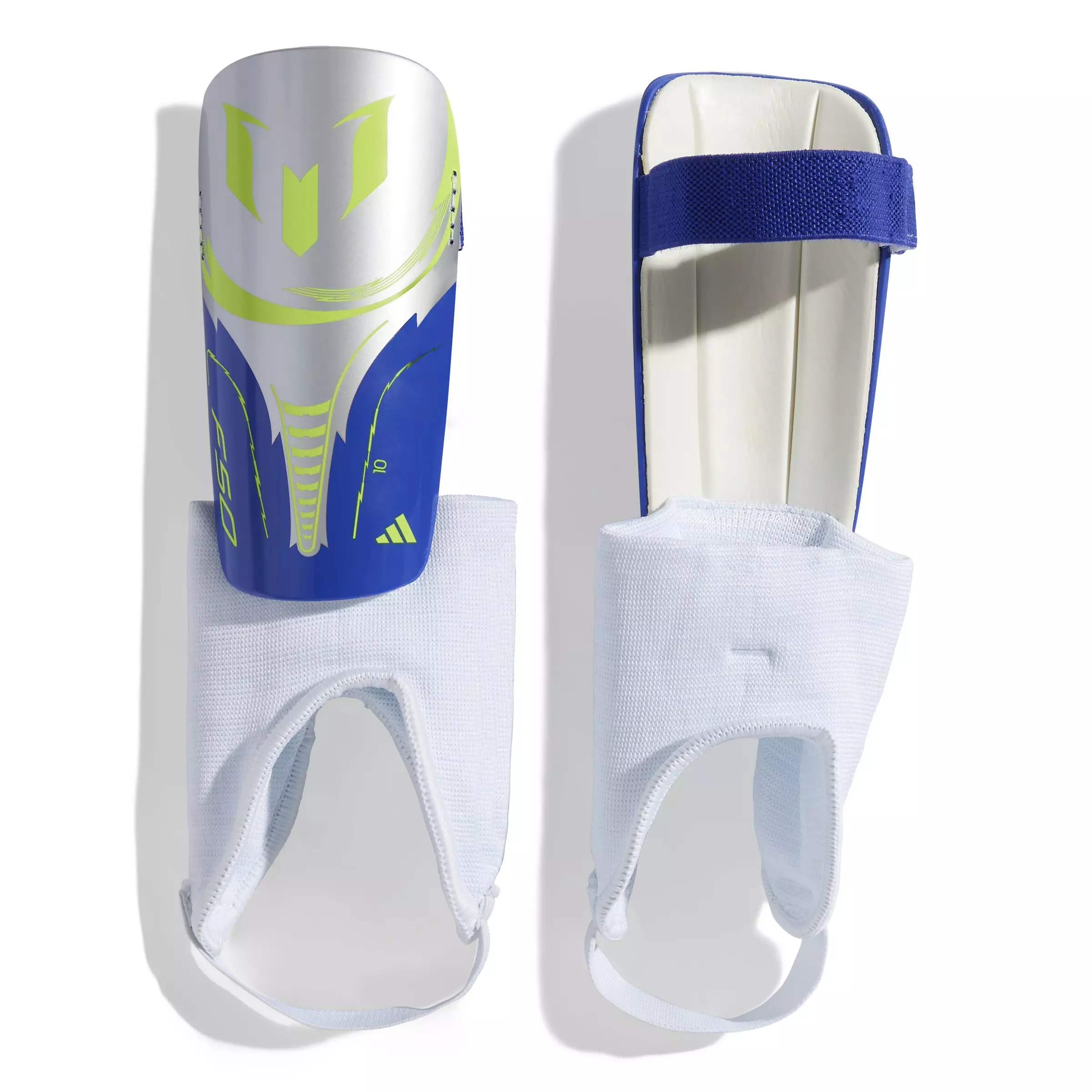 adidas Junior Messi MTC Soccer Shin Guards - Lucid Blue/Silver Metallic