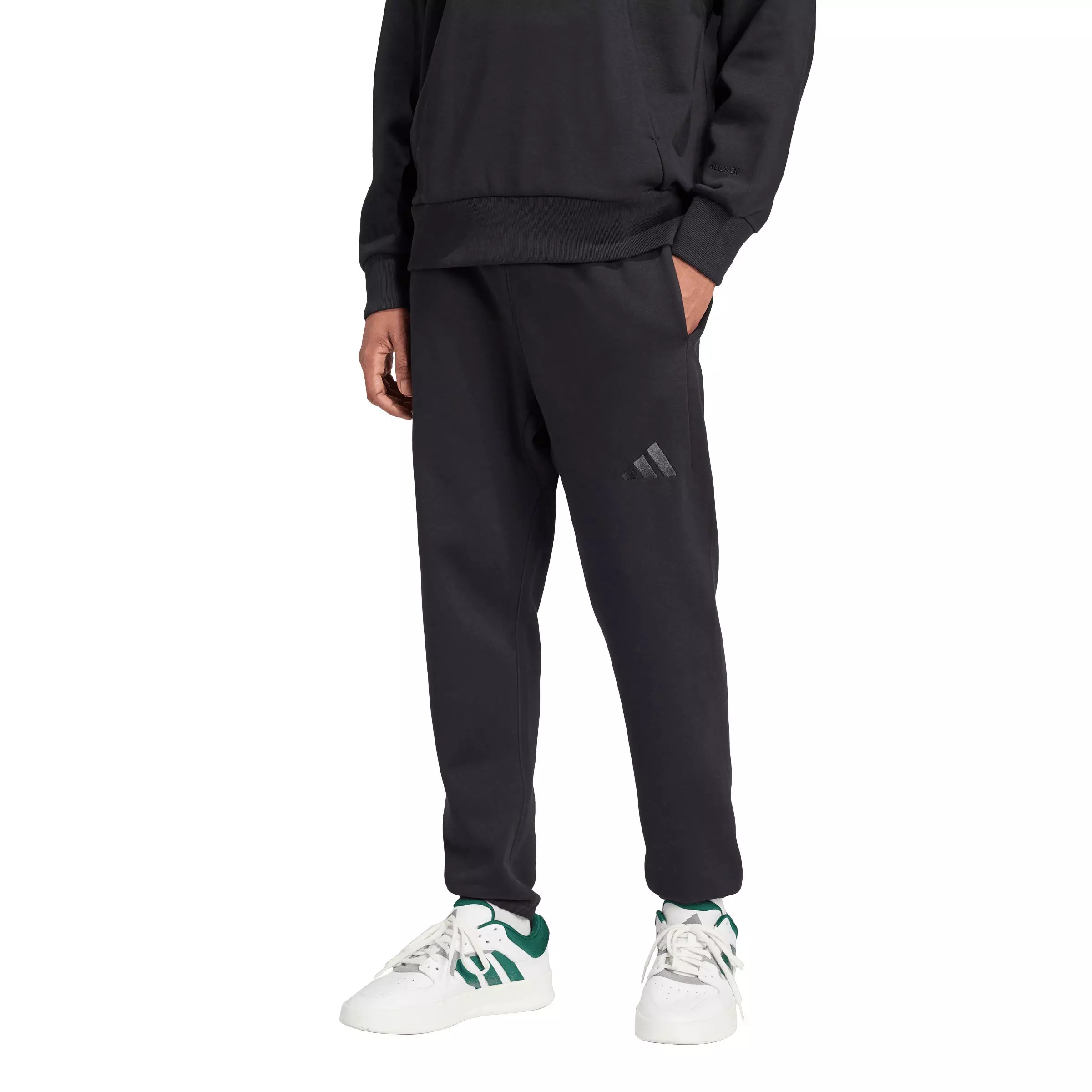 No matter the day, these black adidas Men's ALL SZN Fleece Regular Tapered Joggers are made for complete comfort. The soft cotton-fleece material keeps you cozy while the tapered cut offers a modern silhouette. Two side pockets and one in the back provide extra convenience as you move through daily plans. Pair these pants with your favorite tee or hoodie and you've got an outfit made for all-day ease.Features