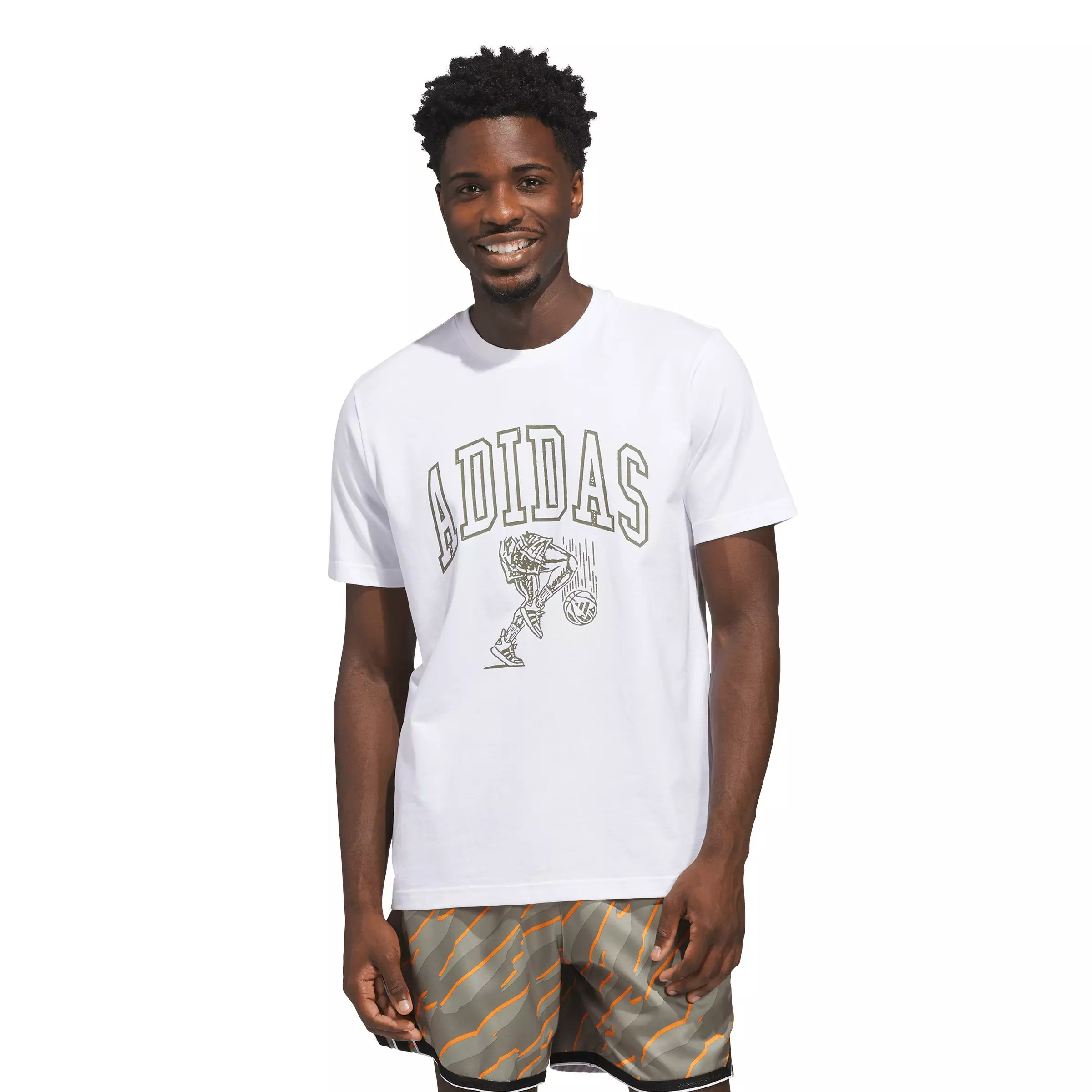 Step into the world of basketball with the adidas Men's Collegiate Arch Graphic T-Shirt - White. Designed for those who love the game, this tee is crafted to combine style and comfort effortlessly. Whether you’re hitting the court or enjoying a casual day, this t-shirt lets you embody the spirit and unity of sport. The loose fit offers a relaxed silhouette and ease of movement, so you can get active without distraction. The knit fabric offers a soft touch against the skin, making it a great choice for a comfortable feel throughout the day. The statement print design adds a touch of bold style, representing the rebellious optimism and iconic quality of adidas. Pair with your favorite adidas trainers and make this t-shirt a go-to for expressing your love for the game, on and off the court.