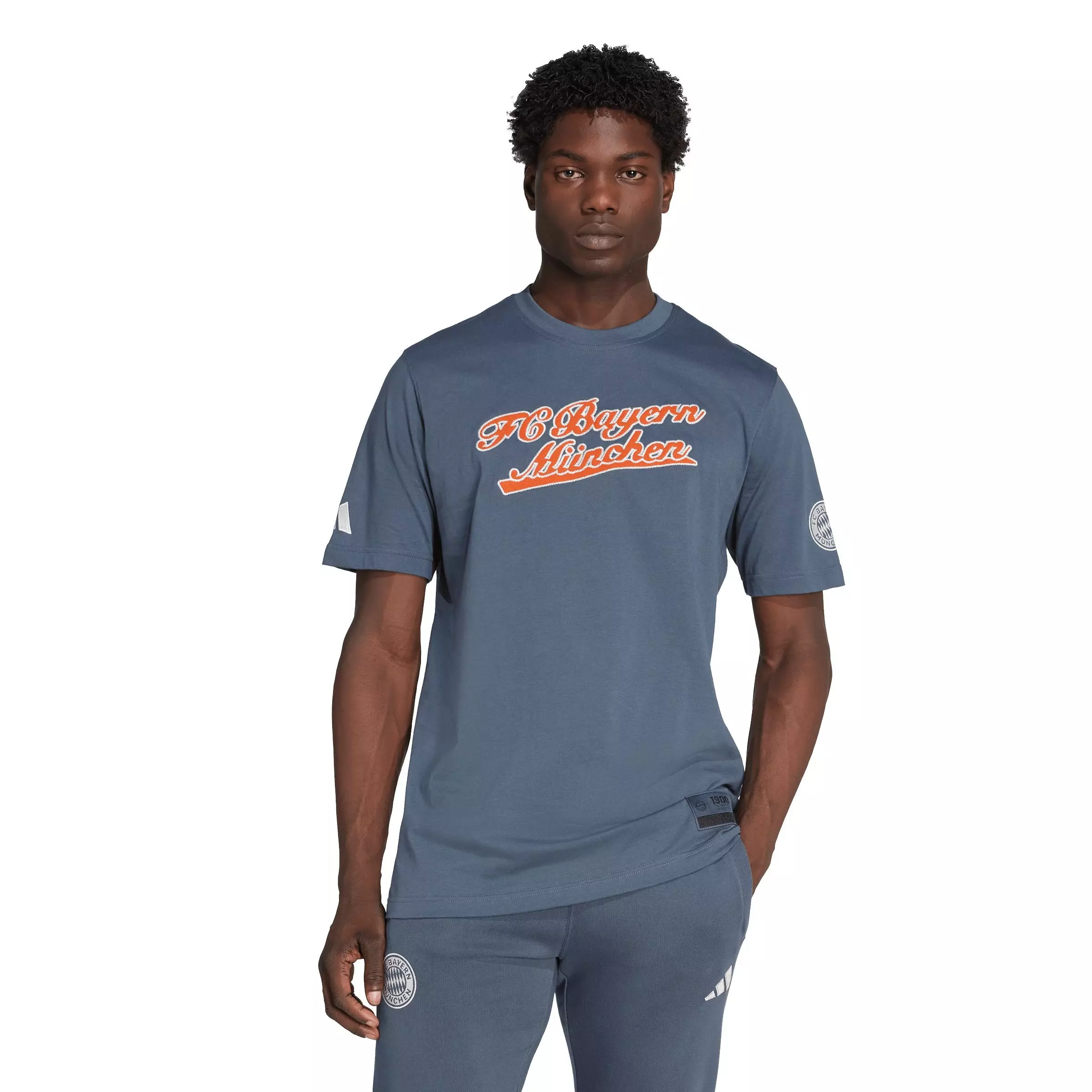 Show club pride in everyday comfort with the adidas Men's FC Bayern US Pack T-Shirt - Grey. A bold, baseball-inspired team name graphic stands out on soft single-jersey fabric that feels great from first wear to last whistle.