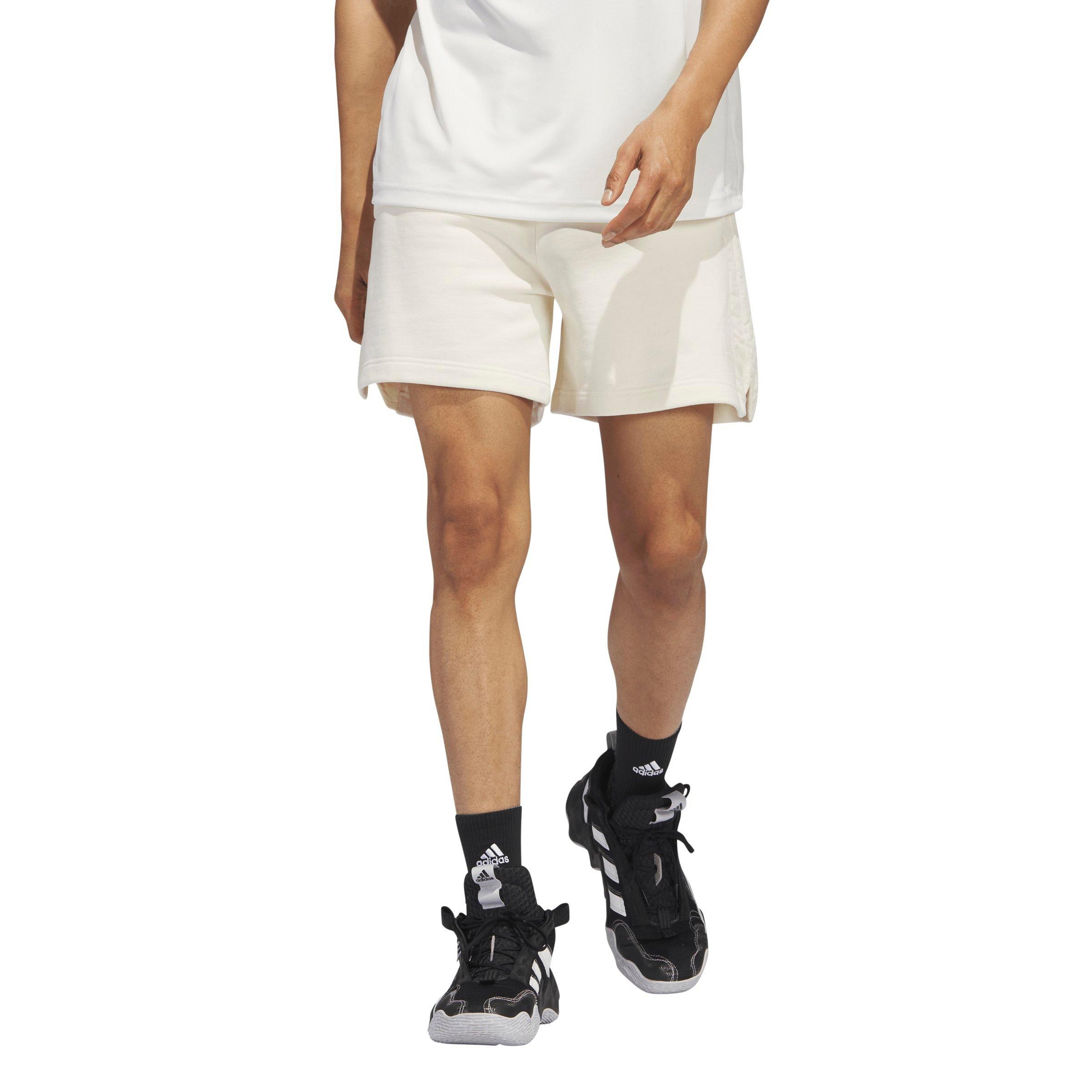 James Harden sends a message with his play on the hardwood and makes a fashion statement when he's off it. These cream white adidas Men's Harden Quilted Basketball Shorts are made with soft French Terry and quilted side panels for a luxurious feel that stays true to his style. The loose fit makes it easy to wear at home or on casual occasions.A minimum of 70% of this product is a blend of recycled and renewable materials.