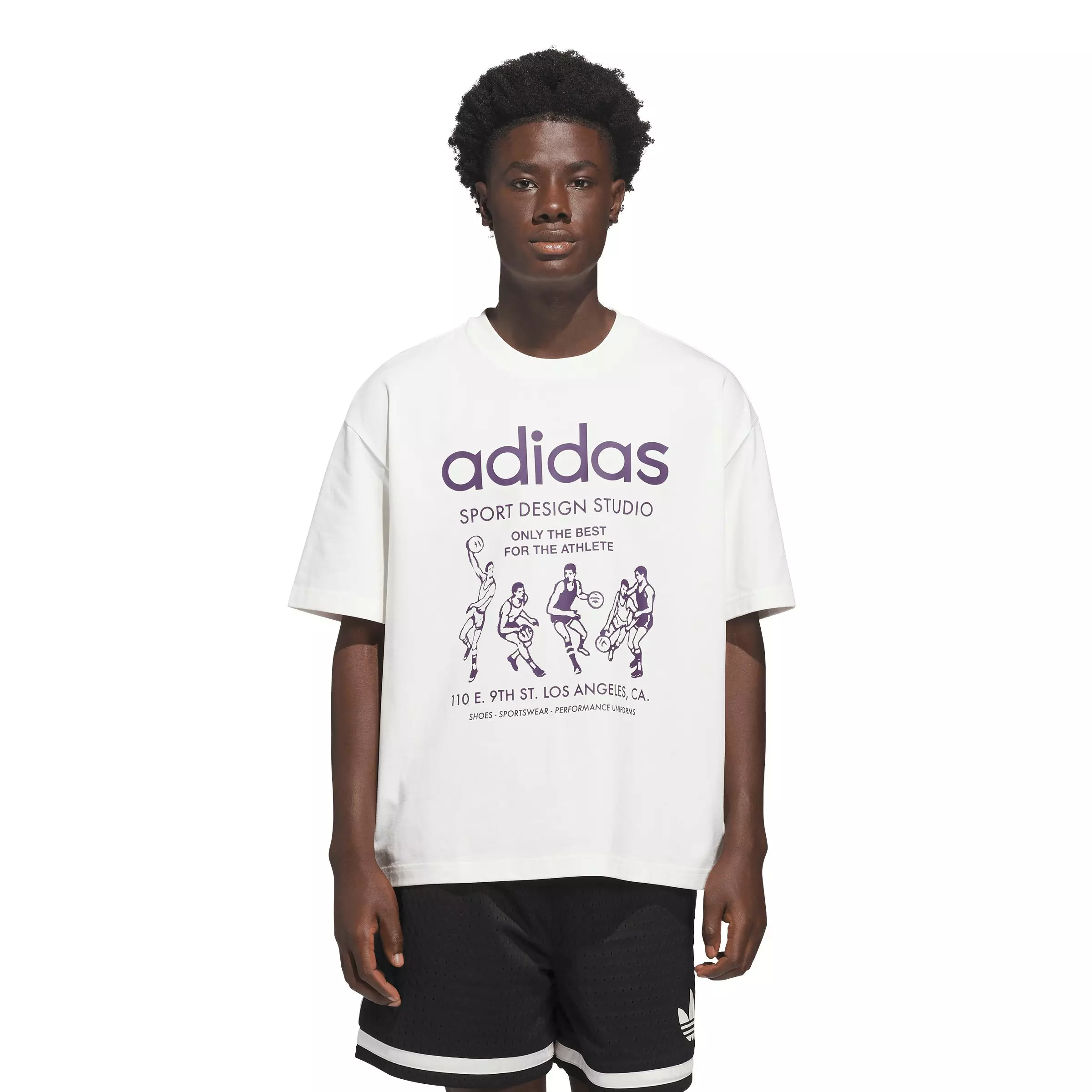 The adidas Men's Only The Best For The Athlete T-Shirt - White/Purple is your go-to apparel for comfort and style. Designed with a roomy fit, this t-shirt is all about freedom and movement. Whether you're hitting the court or chilling with friends, it helps to keep you feeling relaxed and confident. Crafted from single jersey fabric for a soft touch against your skin, this t-shirt is suitable for everyday wear. The round neck design adds a classic touch, while the back neck tape with Performance Running branding gives it a sporty edge. With this t-shirt, adidas brings you a winning combination of functionality and a laid-back vibe.