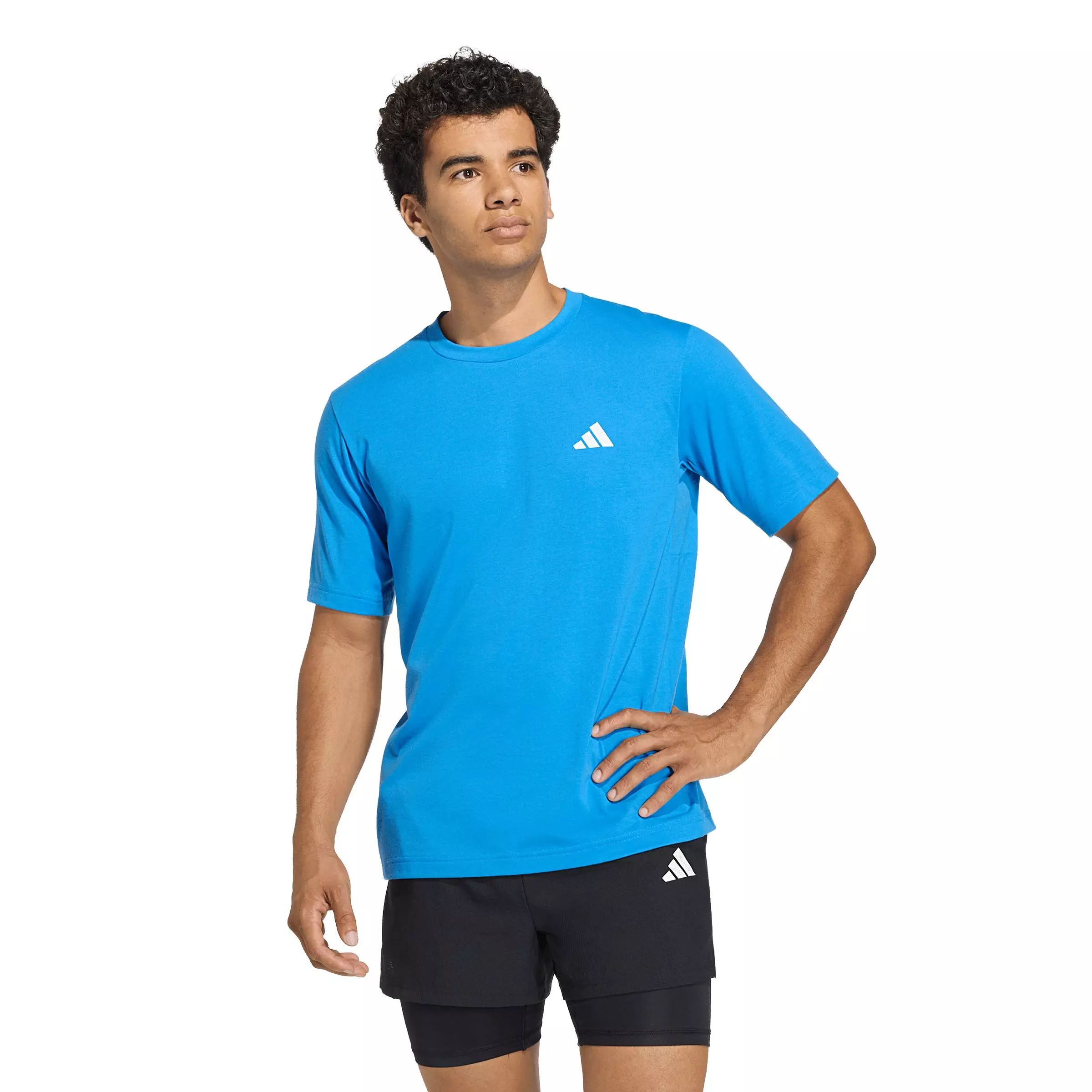 The adidas Men's Workout Essentials FeelReady T-Shirt - Blue is your go-to for training sessions. Designed for those who value both performance and aesthetic appeal, this t-shirt has you covered. Crafted in a regular fit, this t-shirt provides a comfortable and unrestricted feel, allowing you to move freely. The single-jersey fabric offers a soft cotton touch, making it a pleasure to wear, whether you're hitting the gym or going for a run. The integrated Climacool technology wicks and disperses sweat for a cool, dry, and distraction-free performance. Quick-drying materials work hard to help you feel comfortable, so you can feel fresh and stay focused on your session. adidas has engineered this garment to be a staple in your workout wardrobe, combining functionality with style. Embrace your training with confidence and let this t-shirt support you in unlocking your best self.Features