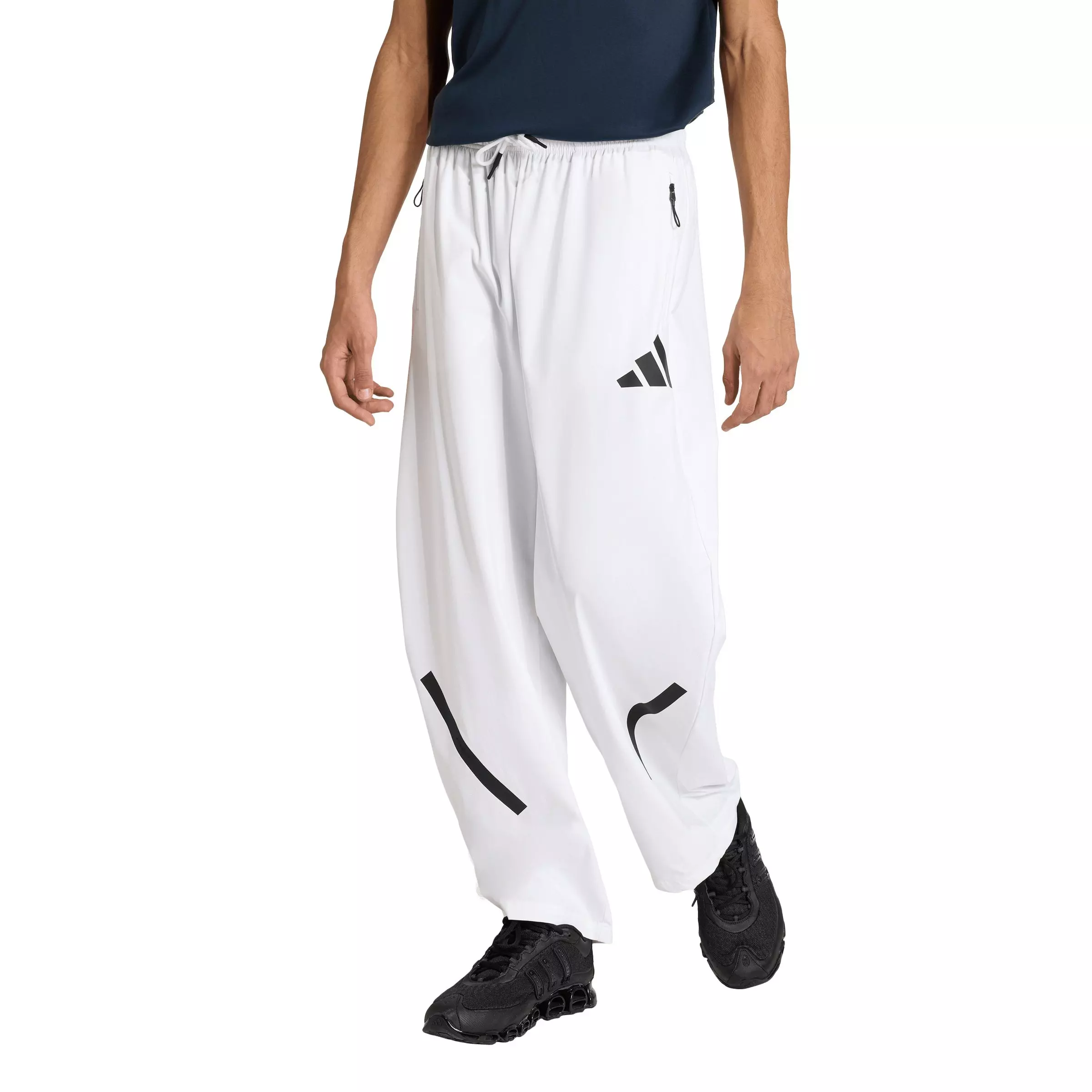 These white adidas Men's Z.N.E. Woven Pants captures the focused energy of the Z.N.E. collection, bringing a modern sportswear look that balances function with style. Crafted from woven fabric, the joggers feel smooth against the skin while standing up to daily wear. A relaxed fit with a mid-rise waist keeps the look versatile, and UPF50 helps protect from the sun. A matte rubber 3 Bar Logo print adds a futuristic edge, its geometric lines reinforcing the streamlined profile for a finish that commands attention.Features