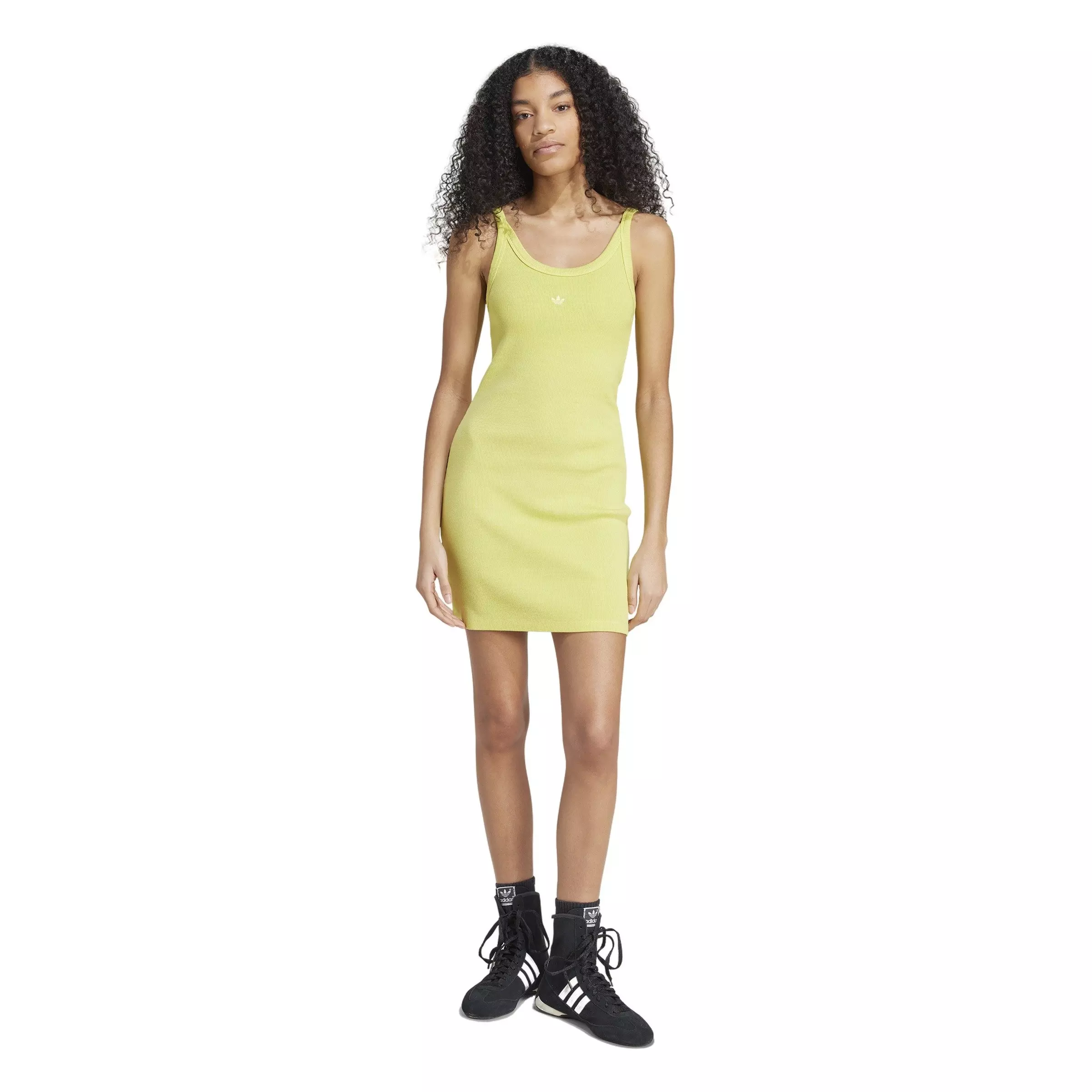 This green​ adidas Original Women's Ribbed Mini Dress gives a nod to '90s hip hop with its mini length and ribbed texture. The slim fit skims your body for a flattering look that pairs perfectly with your favorite sneakers. Moving easily from day to night, this casual dress keeps you comfortably stylish.Features