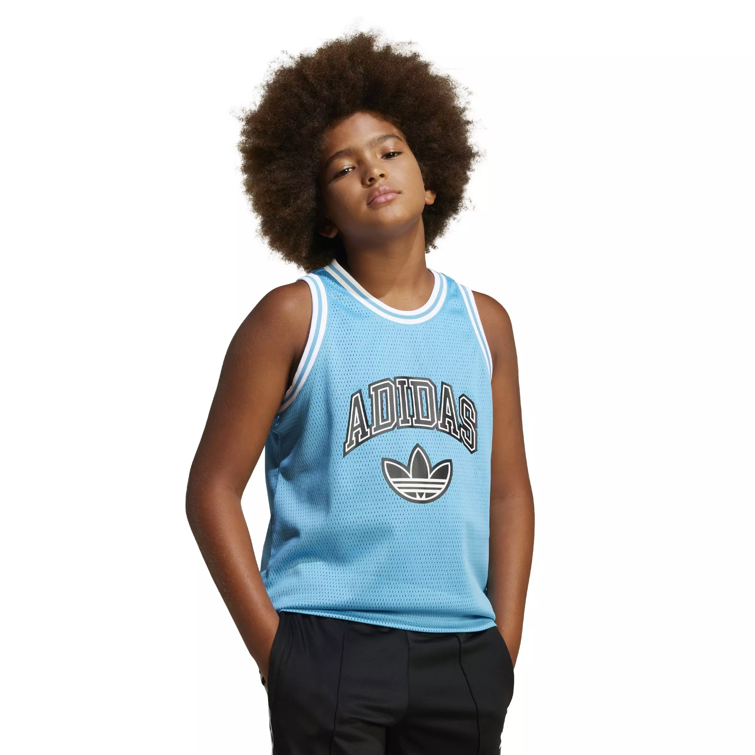 When the weather gets hot, this adidas Originals Big Boys' Tank Top - Blue will keep you cool. Cut for a regular fit, it's made from soft, lightweight fabric perfect for embracing those warmer days. The basketball-inspired design is meant for versatility, so style it your way with a full head-to-toe sport vibe, a mix of patterns or just as a pop of sport. This product is made with 100% recycled materials. By reusing materials that have already been created, we help to reduce waste and our reliance on finite resources and reduce the footprint of the products we make.Features