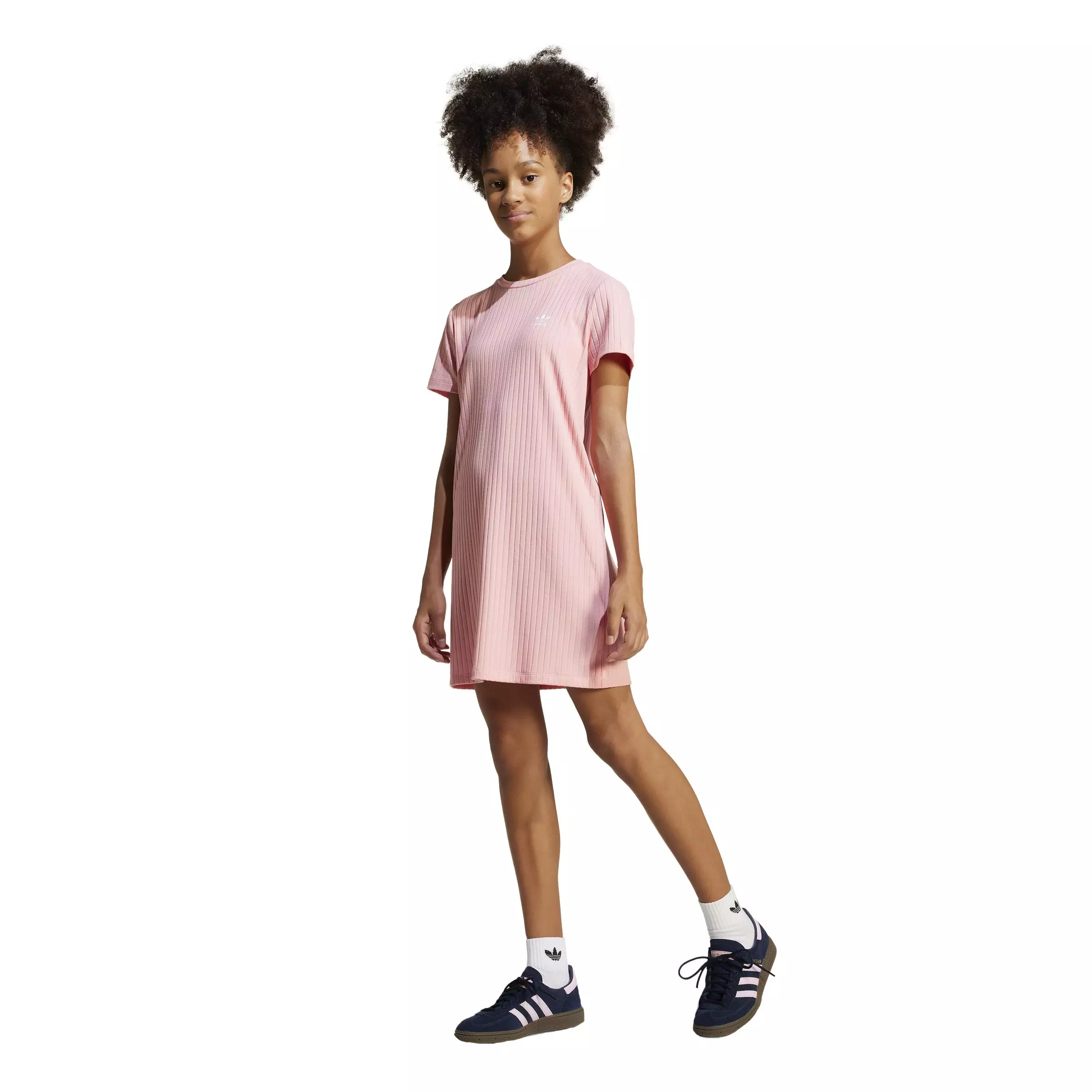 Clean, classic and oh-so comfortable, this adidas Originals Big Girls' Essentials Ribbed Dress - Pink is a must-have for any fashion-savvy teen. Its body-hugging ribbed design flatters your shape while the soft material keeps you cozy all day. The subtle Trefoil logo on the chest adds that signature sporty touch. Whether you're dressing up or down, this ribbed dress has you covered.Features