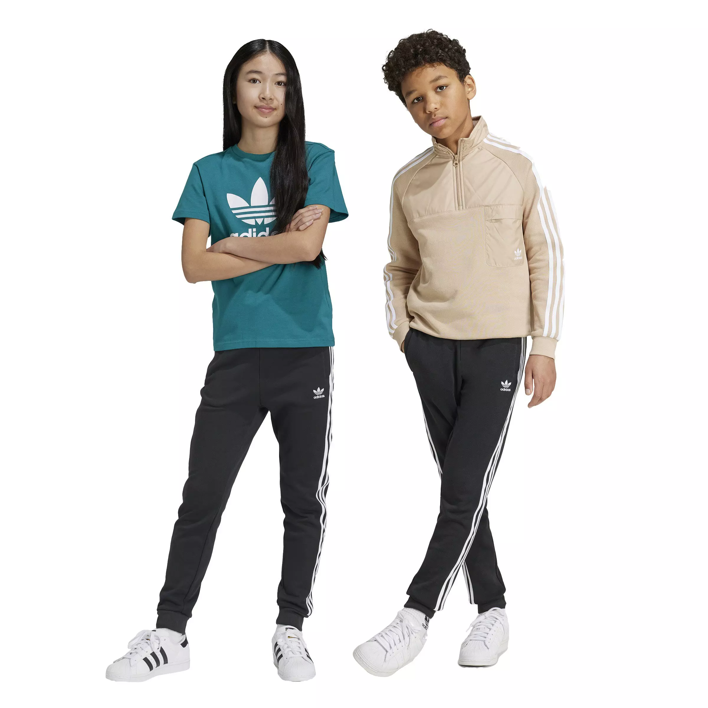 Pull on these adidas Originals Big Kids Trefoil Joggers - Black for an everyday look that's casual yet connected to decades of sport style. Soft French terry feels good against your skin, and zip pockets make it easy to carry your essentials. Contrast 3-Stripes down The sides put your love of sport on full display. The cotton in this product has been sourced through Better Cotton. Better Cotton is sourced via a chain of custody model called mass balance. This means that Better Cotton is not physically traceable to end products. Find out more here: https://bettercotton.org/who-we-are/our-logo/Features