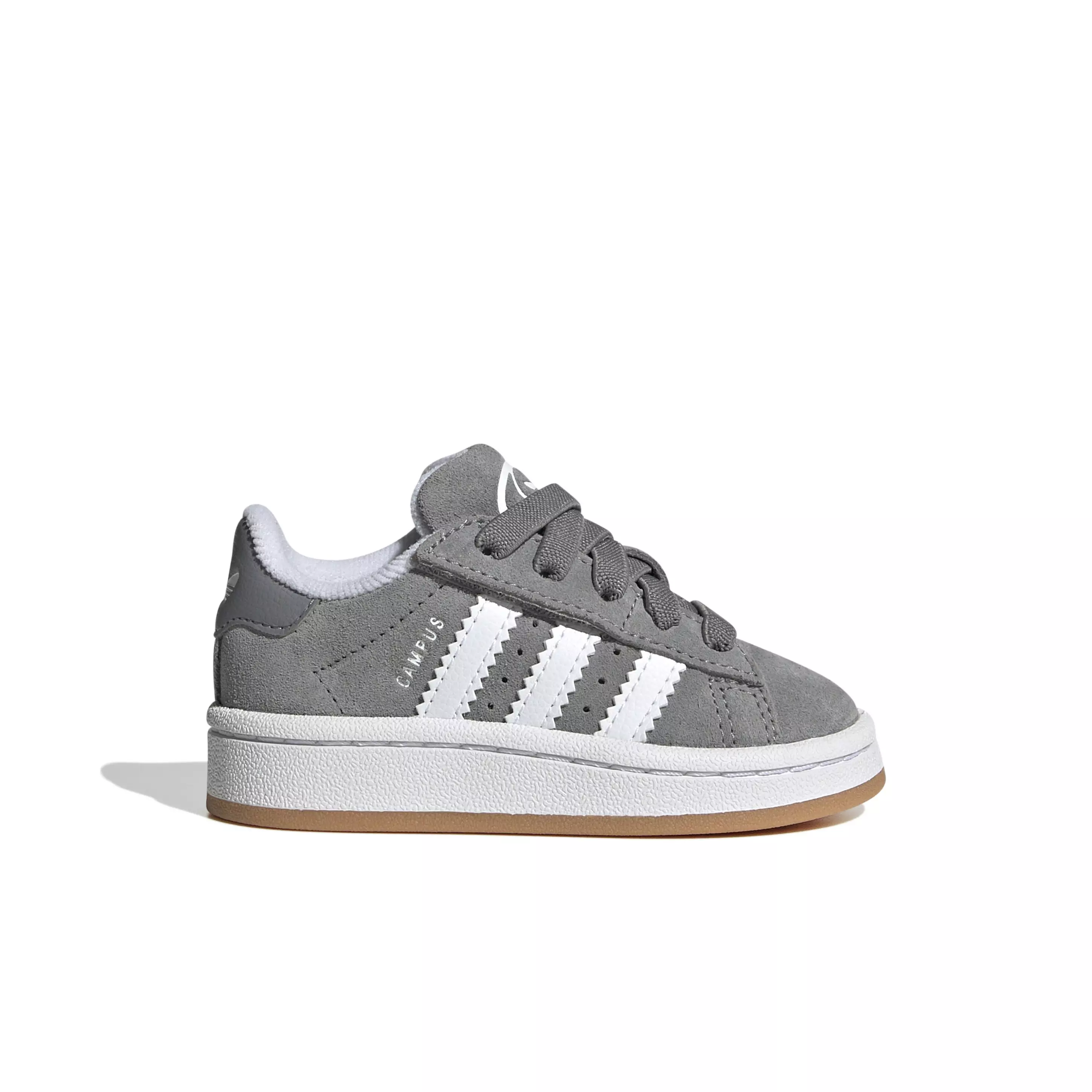 These adidas Originals Campus 00s Comfort Closure "Grey Three/Ftwr White/Gum 2" Infant Boys' Shoe for infants reimagine an icon for today's generation. The signature gum rubber sole grounds an updated leather and suede upper, cut slimmer and lower to the ground. Elastic laces promise slip-on ease to make getting dressed easy. All the retro details are still here — the iconic 3-Stripes, the classic Campus callout — they're just reproportioned to fit modern life. When their look calls for a throwback vibe and fresh new vision, this pair delivers.Features