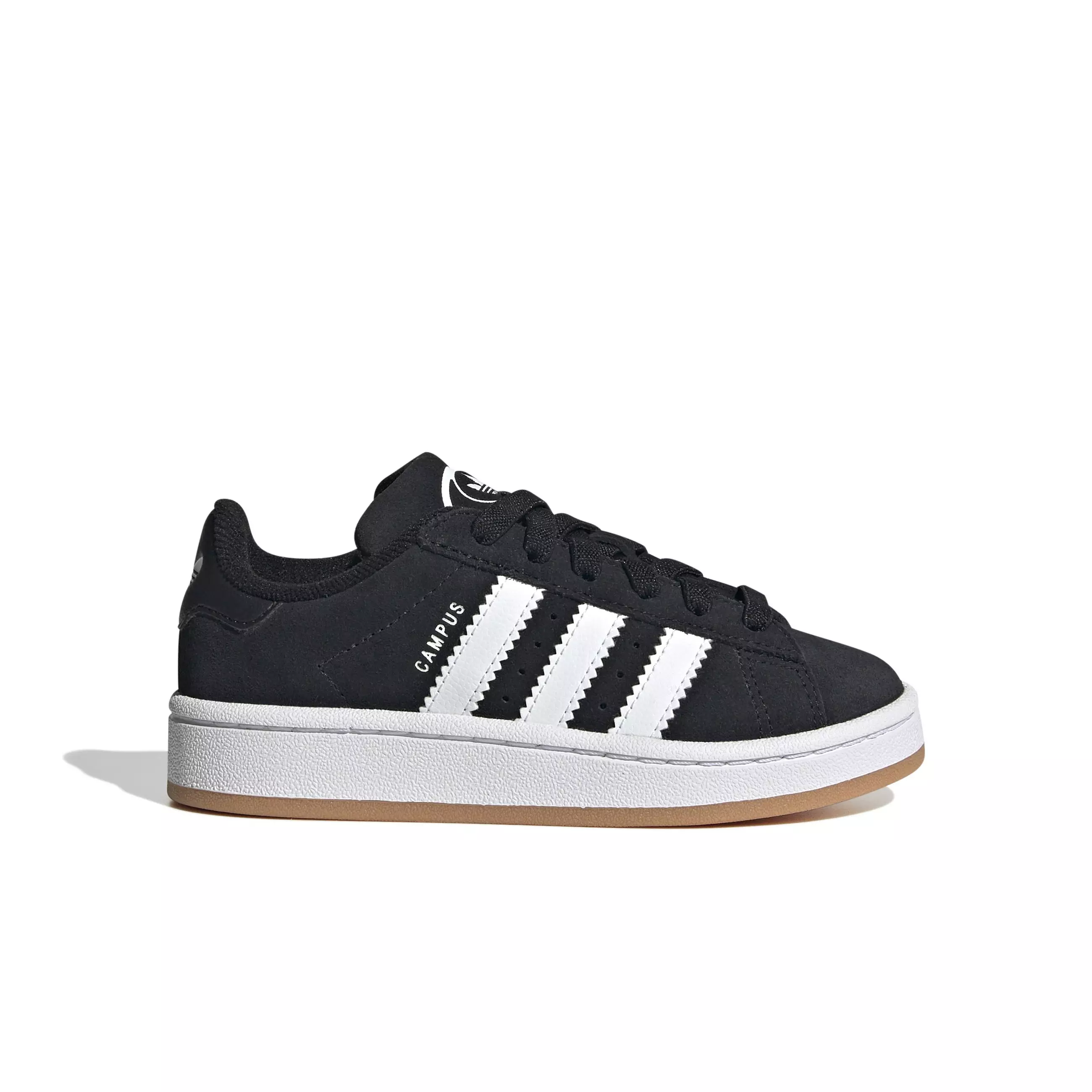 Read Moreadidas Originals Campus 00s "Core Black/Ftwr White/Gum" Preschool Kids' Shoe reimagines an icon of today's generation. The signature gum rubber sole anchors an updated suede upper, cut slimmer and lower to the ground. Elastic laces promise pull-on ease when kids head out the door.