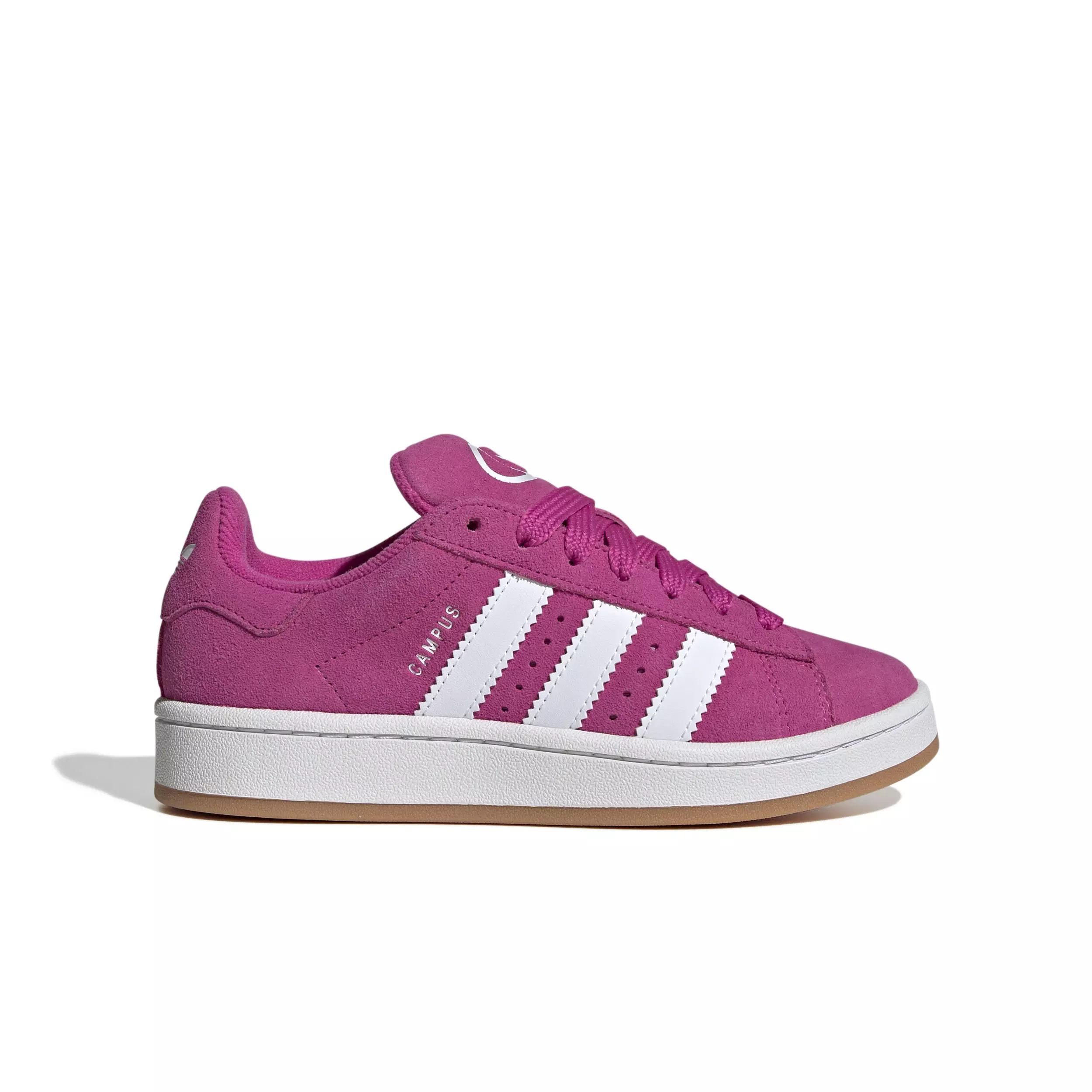 The adidas Originals Campus 00s “Semi Lucid Fuchsia/Ftwr White” Grade School Girls' Shoe sports a unisex design and revives the iconic 80s silhouette with updated proportions and a vibrant mix of fuchsia and white. Crafted from premium leather with a soft textile lining, it shapes a sturdy feel.