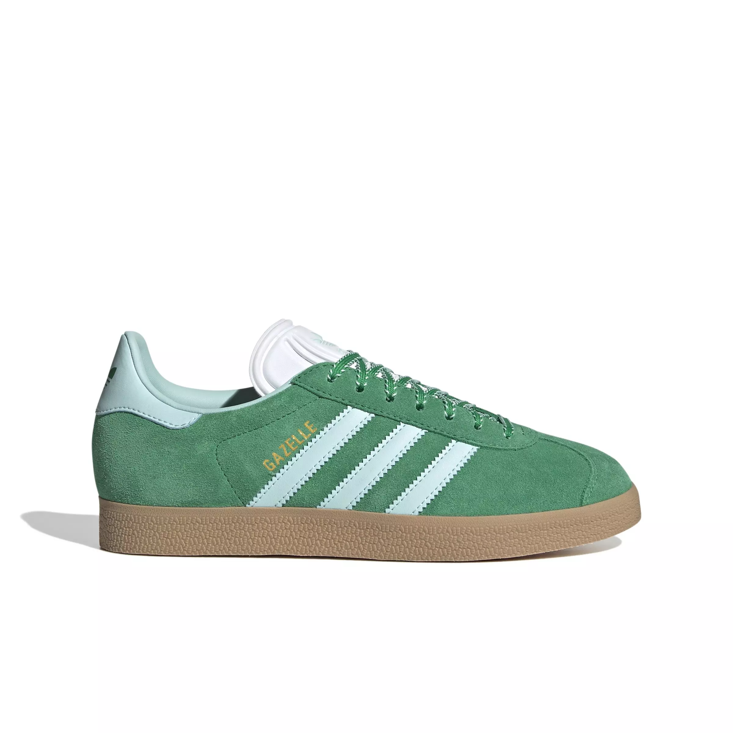 Since 1991, the adidas Originals Gazelle "Green/Semi Flash Aqua/Gold Metallic" Women's Shoe have been known for their timeless, versatile design. Their pigskin suede upper provides a premium look and feel, and the rubber outsole offers durable traction to keep you grounded. Once meant for training, this shoe is now a lifestyle staple. The laces are two-toned on the edges, adding a subtle twist.Features