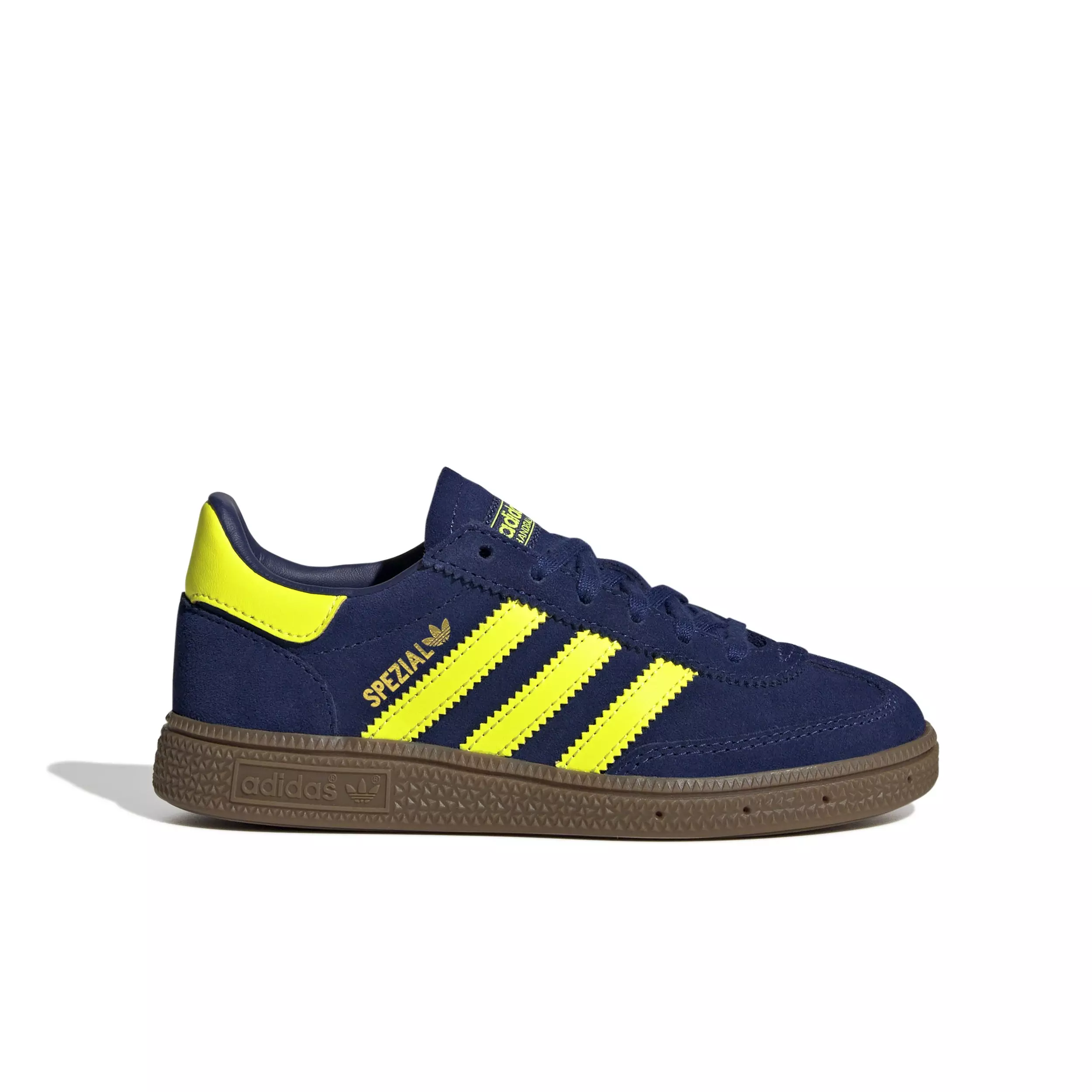 The adidas Originals Handball Spezial "Victory Blue/Solar Yellow/Gum 5" Preschool Boys' Shoe have been holding down their place in adidas history since the '70s. First built for pros on the handball court, they're now a must-have pair for sneaker collectors everywhere. This edition comes in a juniors' size range, and it's made with the classic T-toe design and a rubber outsole. A nylon and suede upper rounds out the look.Features