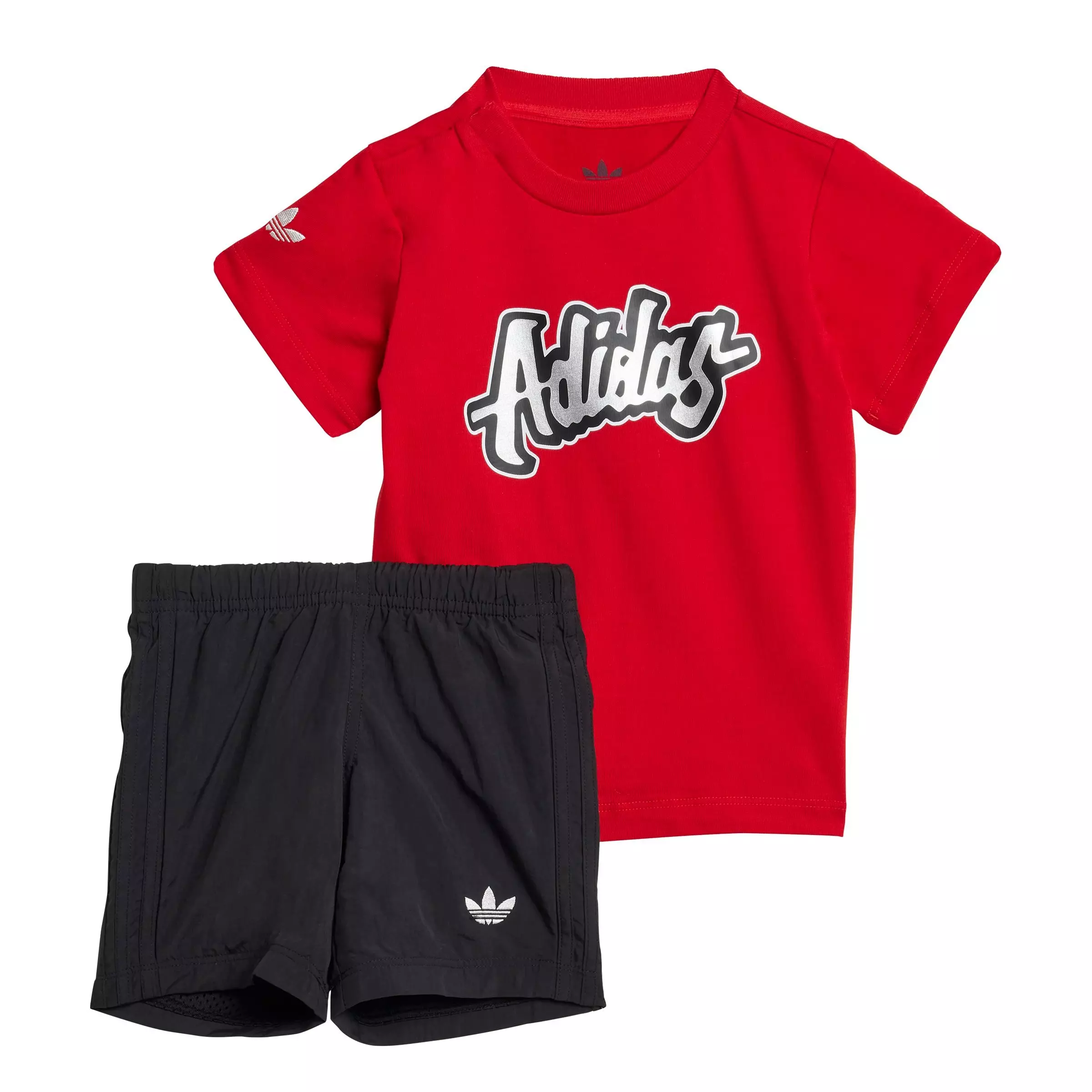 This red & black adidas Originals Infant Boys' Short Tee Set is an instant outfit packed with sport heritage style. The single jersey build is all about comfort so they can play all day. An adidas graphic on the front and 3-Stripes down the thighs connect them to decades of adidas tradition.Features
