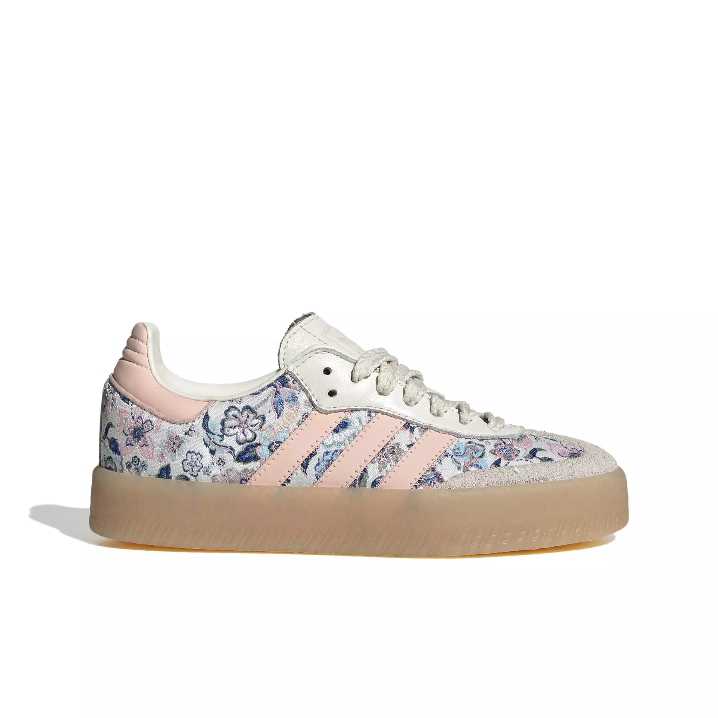 Classic meets contemporary with the adidas Originals Liberty London Sambae "Off White/Blush Pink/Gum 3" Grade School Girls' Shoe. This exclusive collaboration reimagines timeless Liberty London prints through a modern, sporty lens, blending vibrant floral designs with iconic adidas Originals streetwear. Inspired by the artistry of Delft Blooms, each shoe features floral patterns and elegant laces, creating a playful yet refined look for everyday adventures. The upper delivers a premium feel, while the regular fit provides comfort. A sturdy rubber outsole supports grip, making these shoes suitable for everything from playtime to family outings. The serrated 3-Stripes, Trefoil tongue branding and Samba details celebrate adidas’ heritage. Designed for parents who value quality and style, these shoes offer a bold statement and lasting comfort for growing feet. Let your child stand out and embrace every moment with confidence.Features