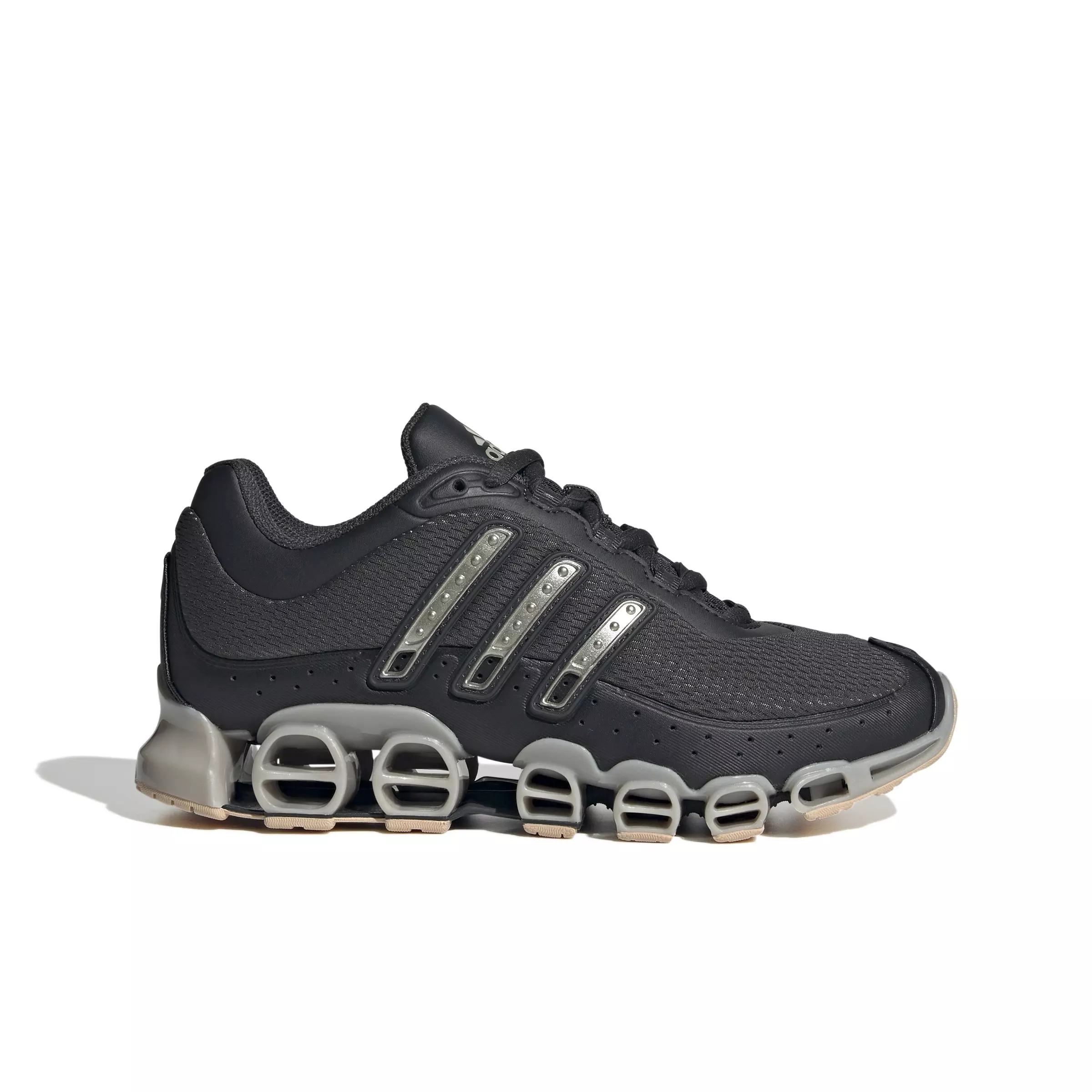 A deep cut from the adidas archives, the adidas Originals Megaride "Carbon/Halo Blush/Champagne Metallic" Women's Shoe is one of our most iconic '00s running shoes. These trainers are a one-to-one bring back of the originals. The metallic-accented midsole stands out from the crowd with full open tunnels. The open mesh upper comes with a techy mudguard for an authentic Y2K feel.Features