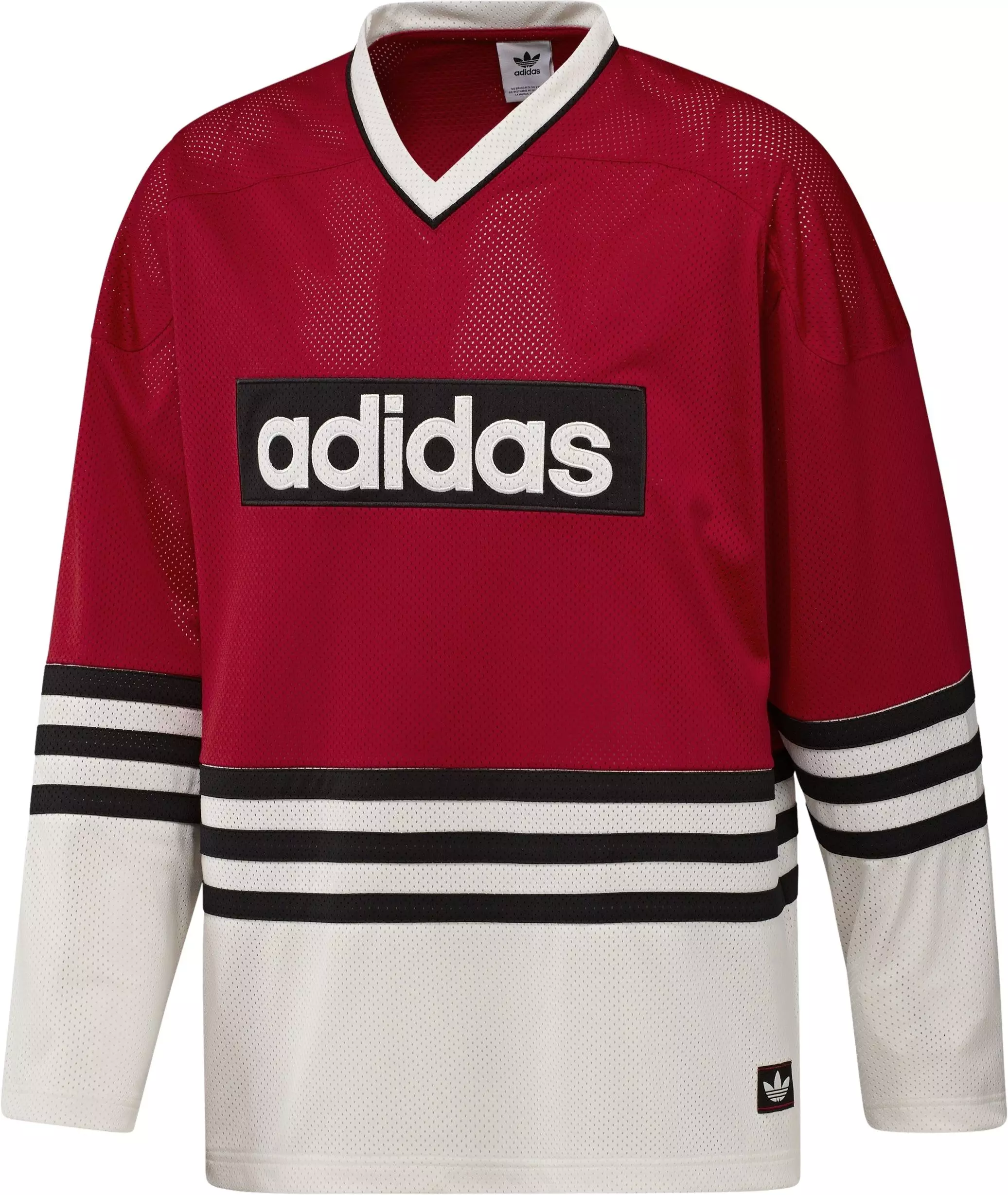 The adidas Originals Men's Hockey Jersey is your go-to for a laid-back, street-ready look. With its loose fit and mesh construction, this jersey is designed for comfort and style.This hockey jersey is all about feeling good while looking great. The mesh fabric provides breathability, helping you feel cool and comfortable throughout the day. It's a classic piece that pairs effortlessly with your favorite jeans or shorts.Its timeless design and comfortable fit make it a must-have for those who appreciate style and ease. With adidas, you're not just wearing a jersey; you're making a statement.
