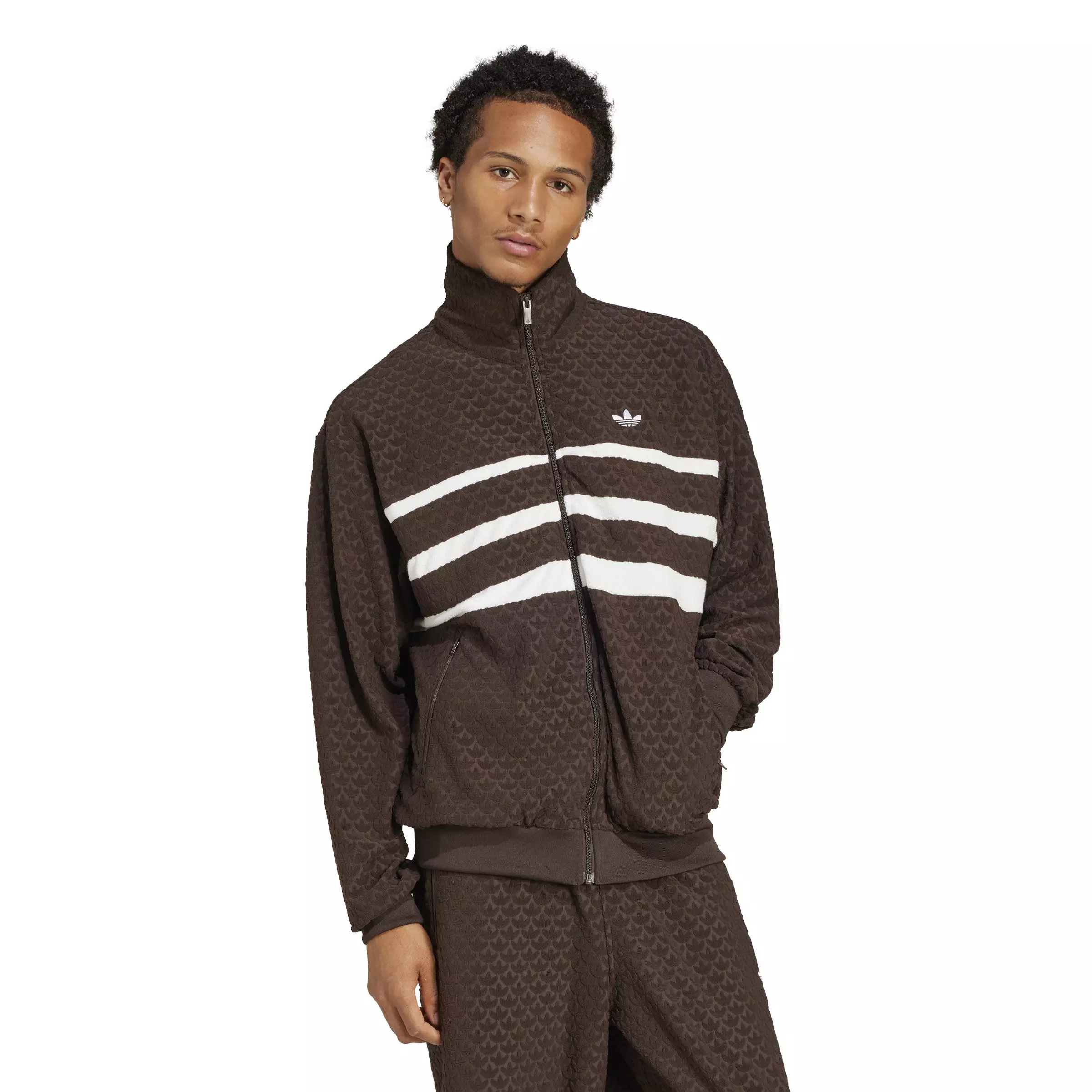 Pair this brown adidas Originals Men's Monogram Track Top with track pants for a head-to-toe look or wear it over a tee for laid-back style. Either way, it's an instant classic. It has a loose shape for a casual look and feel, with zip pockets to keep essentials close. The iconic 3-Stripes and a Trefoil monogram print add a subtle nod to heritage style.Features