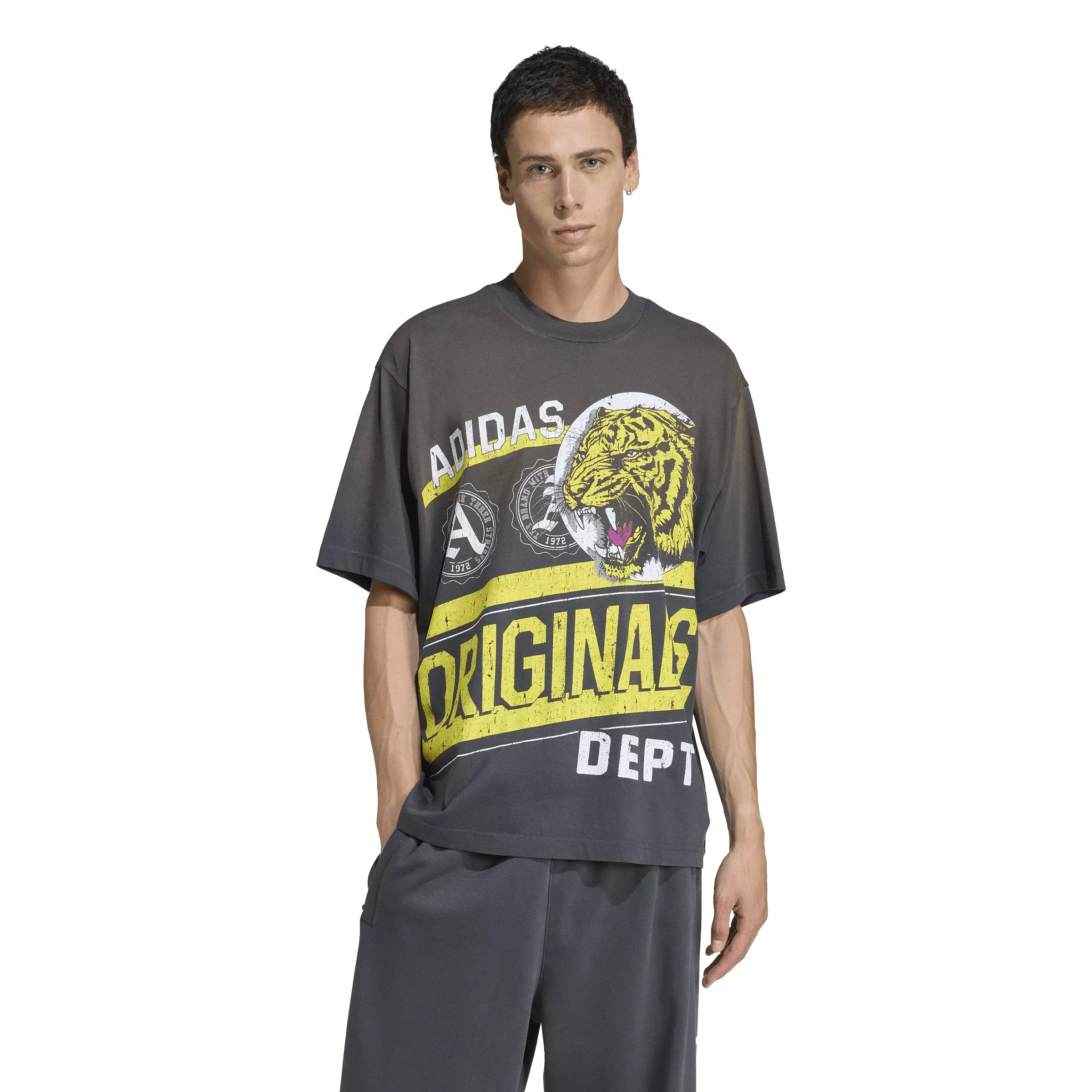 The adidas Originals Men's Originals Dept. Graphic Tee - Grey is your go-to for effortless style and comfort. Designed with a casual vibe, this t-shirt is all about embracing your individuality. Crafted from pure cotton, it offers a soft touch against your skin, making this t-shirt a great choice for everyday wear, whether you're heading for a casual day out or lounging at home.Features