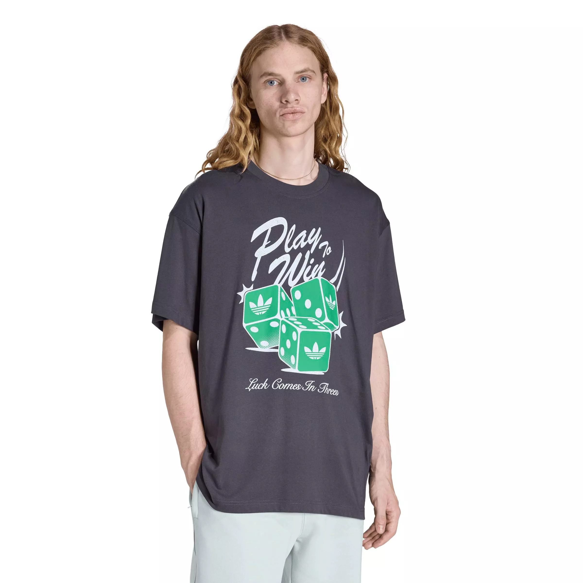 The adidas Originals Men's Play to Win Dice Graphic Tee refreshes a casual essential with bold dice artwork that nods to classic street style. Crafted for everyday comfort, it features a soft cotton feel and an easygoing fit that pairs effortlessly with your go-to denim or joggers.