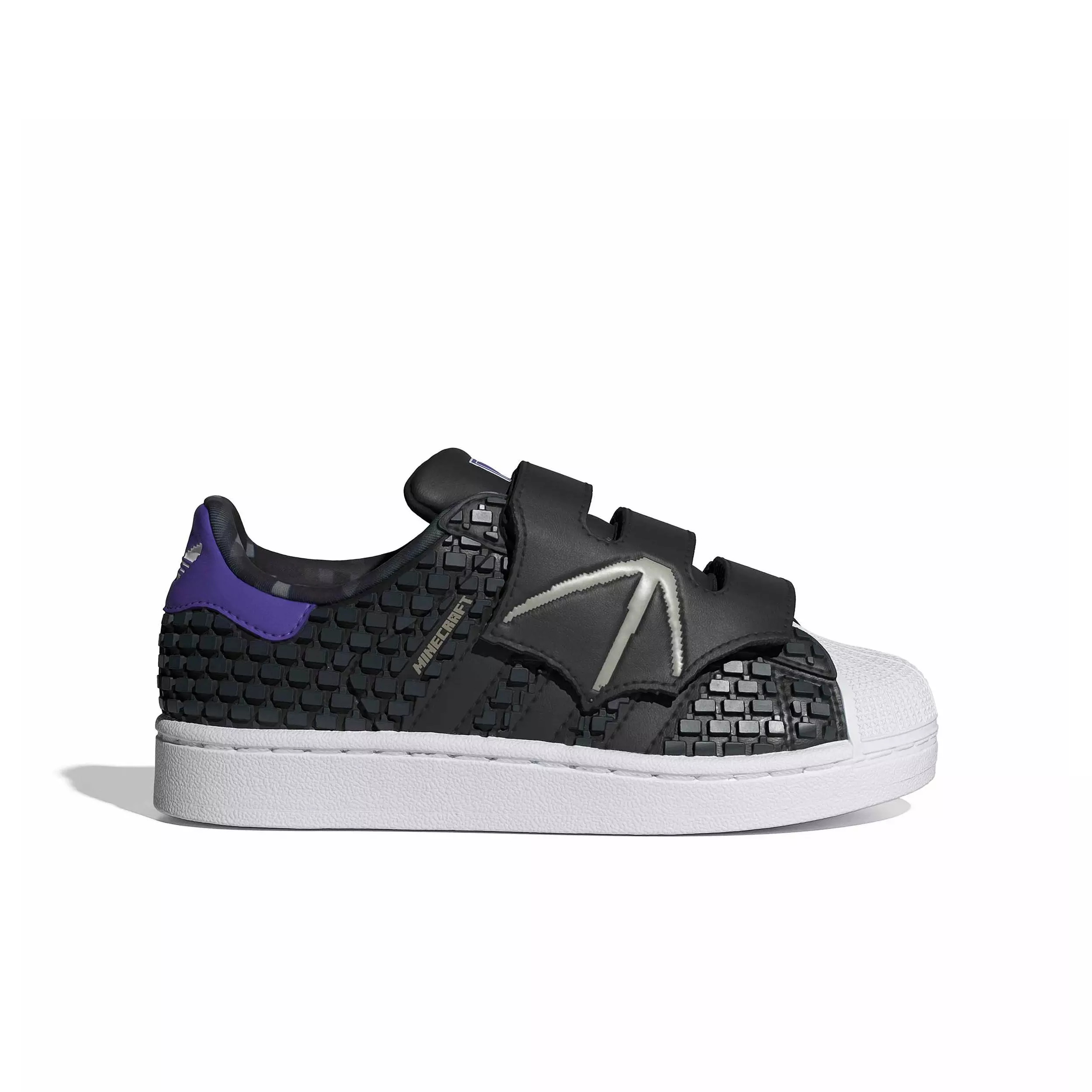 The adidas Originals Minecraft Superstar II CC "Core Black/Core Black/Ftwr White" Preschool Boys' Shoe bring the iconic style of the Superstar back to life, now with a playful twist inspired by Minecraft. These shoes are a smart pick for kids who love adventure and creativity. The leather upper and iconic shell toe design offer durability and timeless style. The Minecraft-inspired elements, such as the Skeleton character lace charm and character tools on the hook-and-loop closure and heel tab, add a fun and unique touch that kids will adore. With the original shape and details that made the Superstar a street legend, these shoes feature added padding in the tongue and heel area for extra comfort. This pair is designed to support a generation of young creatives, encouraging them to explore their world with confidence and originality. Whether they're playing at school or hanging out with friends, the adidas shoes are ready to make every step an adventure.Features