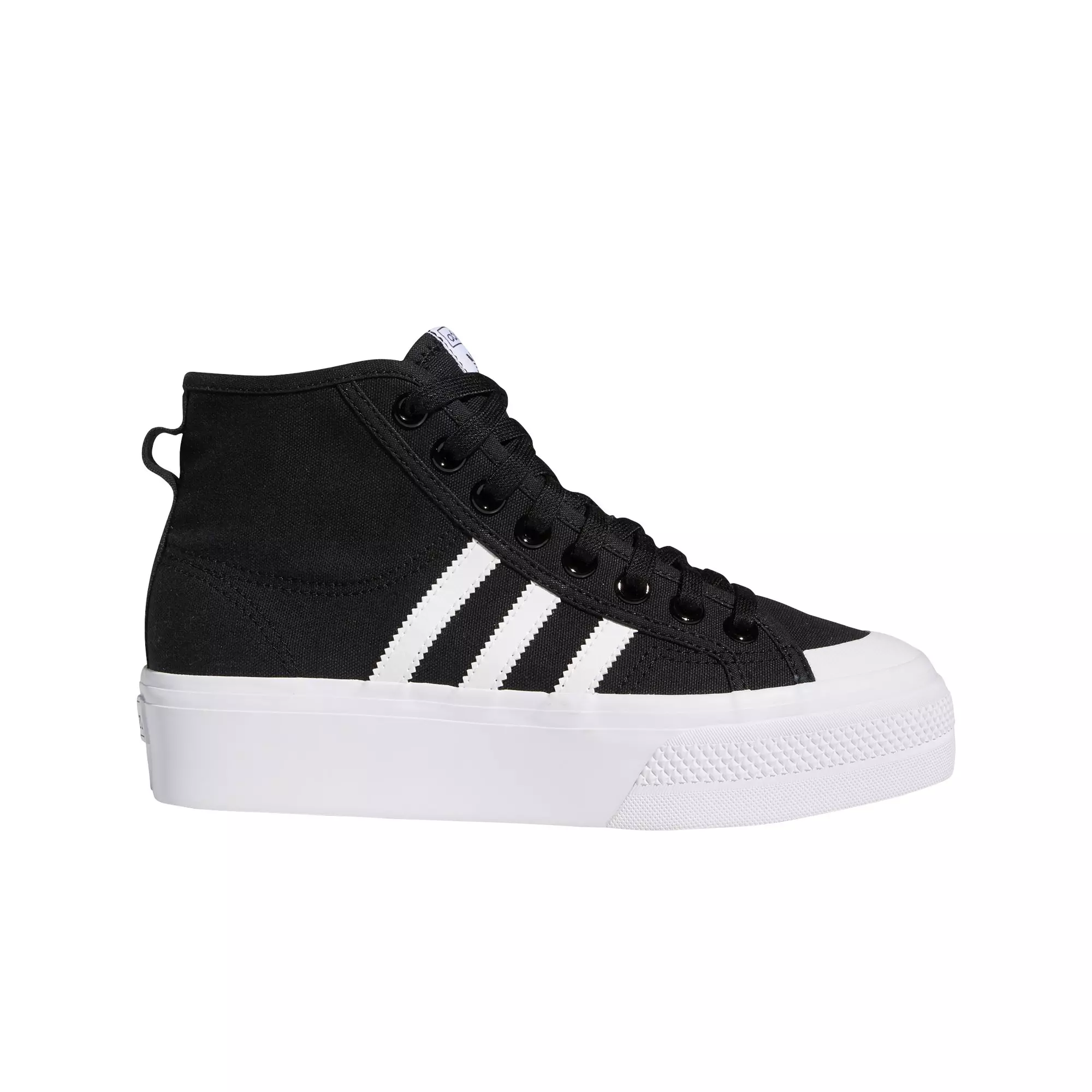 Chunky, but old-school. Take your vintage style to new heights in a pair of adidas Originals Nizza Platform Mid "Black/White" Women's Shoe with a platform outsole. The retro upper looks great with all kinds of denim. And who doesn't appreciate a little extra height?Features