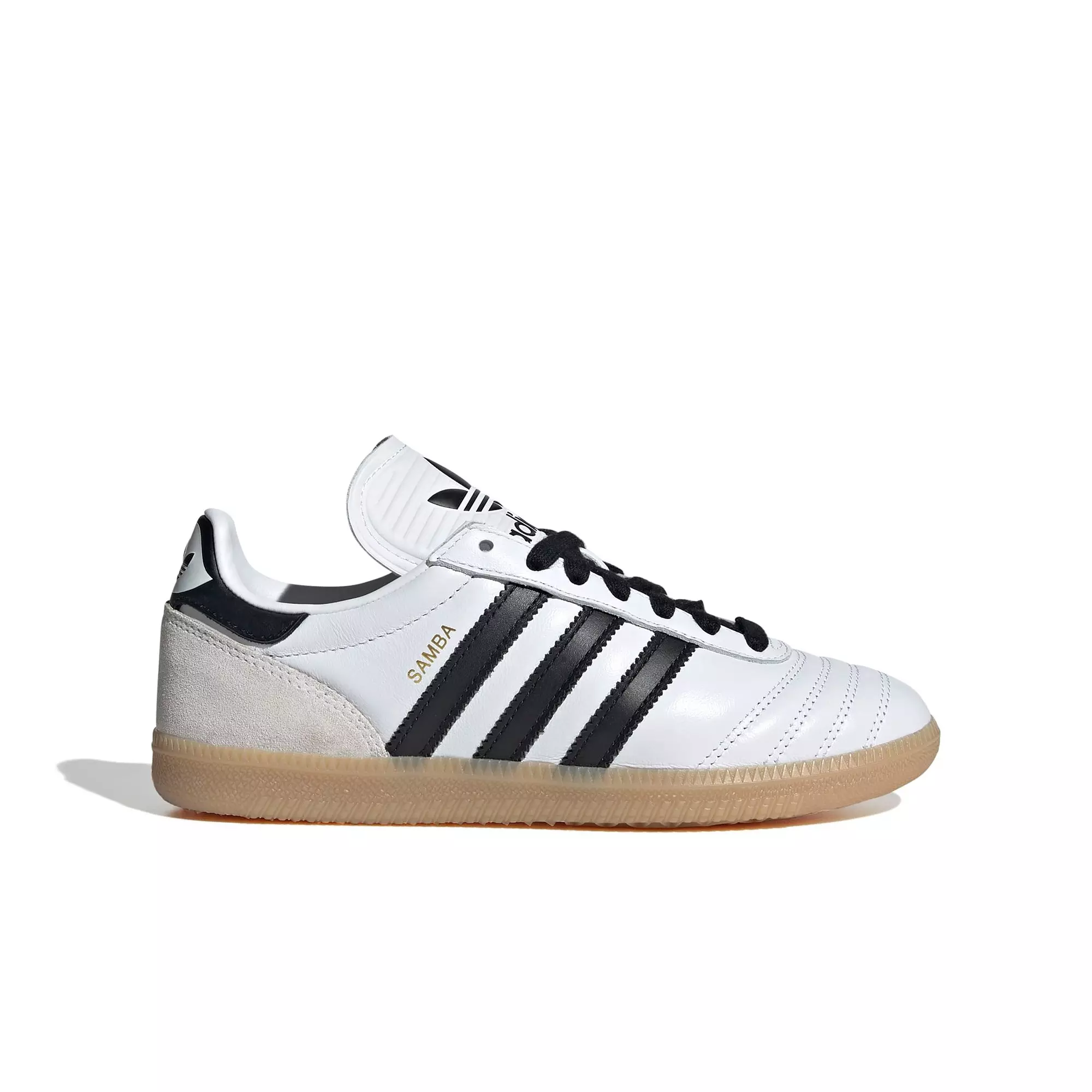 - Colorway: Features crisp White upper, contrasting Core Black stripes and Gum sole on the iconic adidas Originals Samba silhouette.