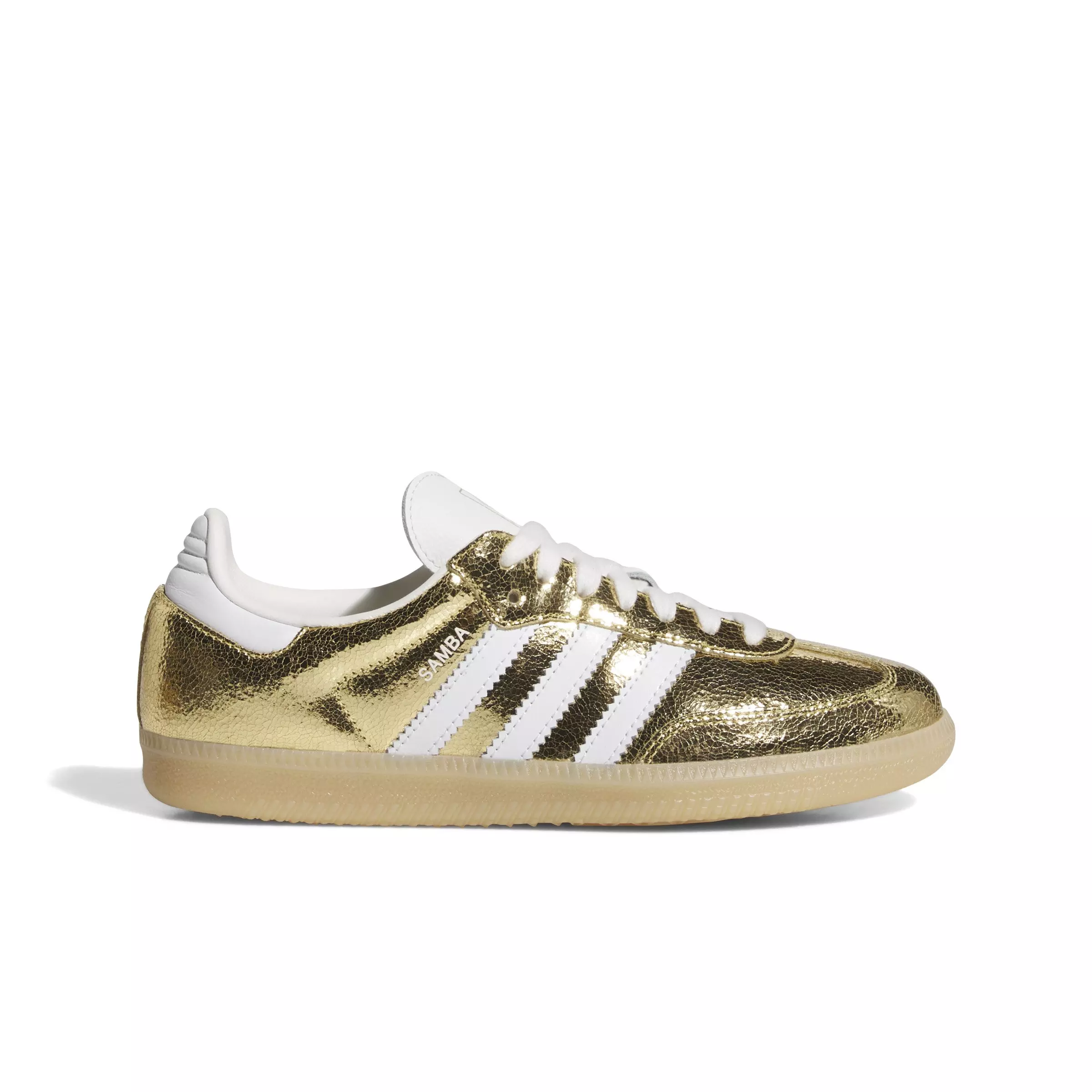 Celebrate a timeless terrace classic with the adidas Originals Samba OG "Gold Metallic/Core White" Women's Shoe. A metallic-finished leather upper pairs with clean lines and heritage detailing for a look that moves effortlessly from street to studio.