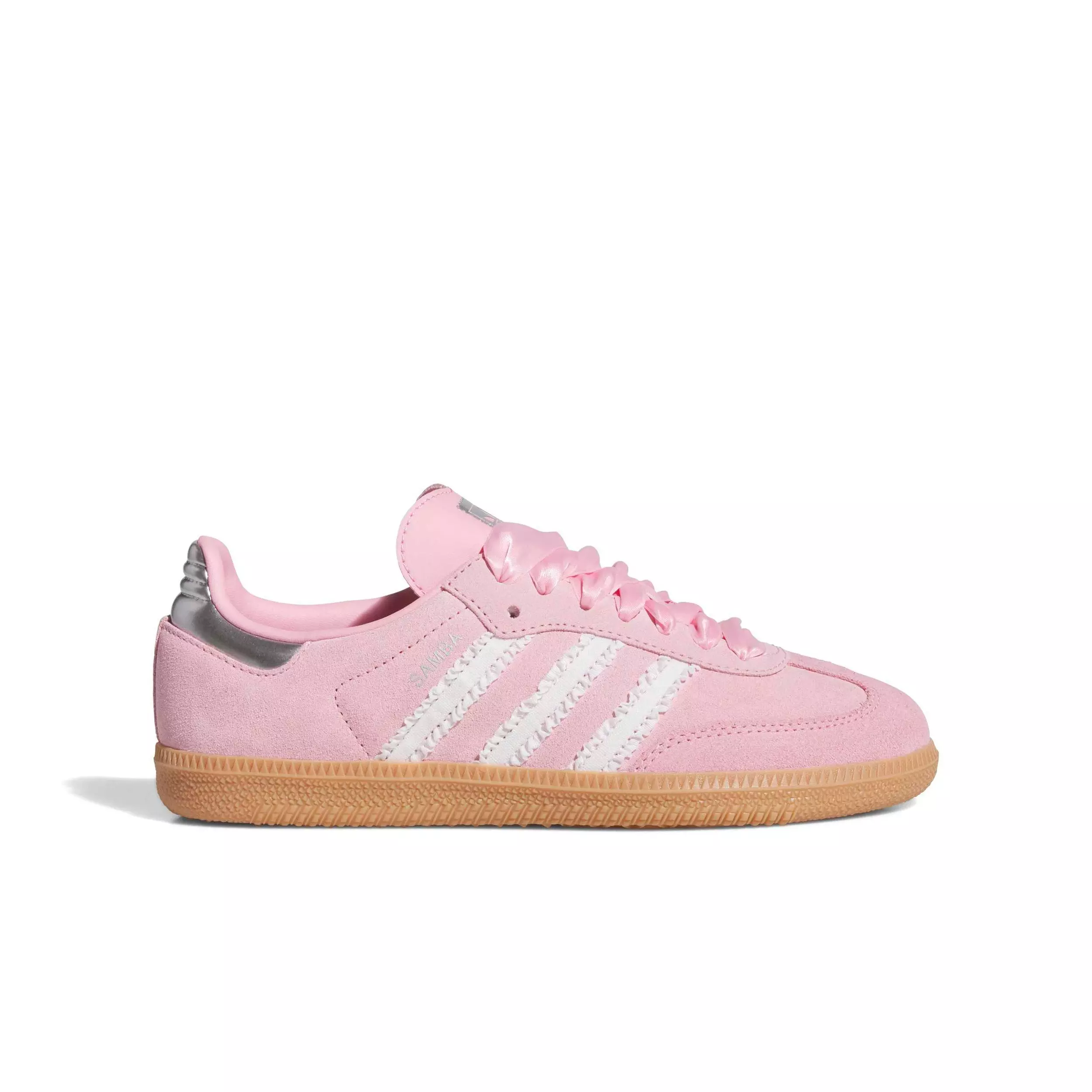 Introducing the adidas Originals Samba OG "Pink Ribbon" Grade School Girls' Shoes, a timeless classic for juniors with an eye for style. Crafted from premium leather and featuring a durable rubber outsole, these shoes blend practicality with a dash of wear-anywhere sophistication. An Ortholite sockliner adds comfort, while the classic lace closure ensures a secure fit - the perfect pair for those who live their life in motion.Features