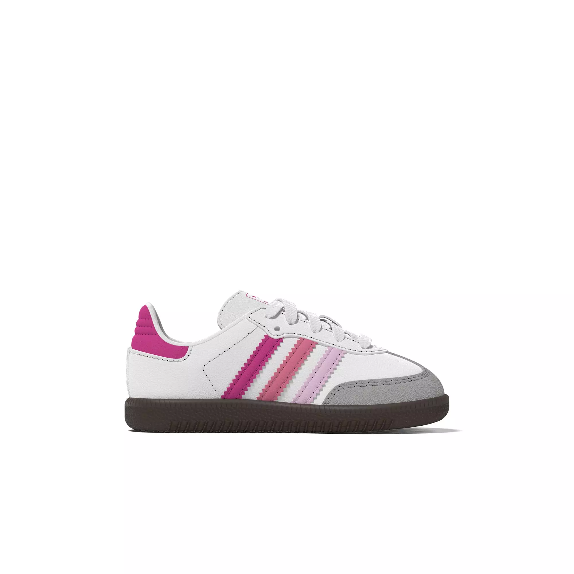 The adidas Originals Samba OG "White/Orchid Fusion/Rose Tone" Toddler Girls' Shoe echoes a 1960s soccer heritage with a leather upper, a gum rubber sole and the iconic 3-Stripes.