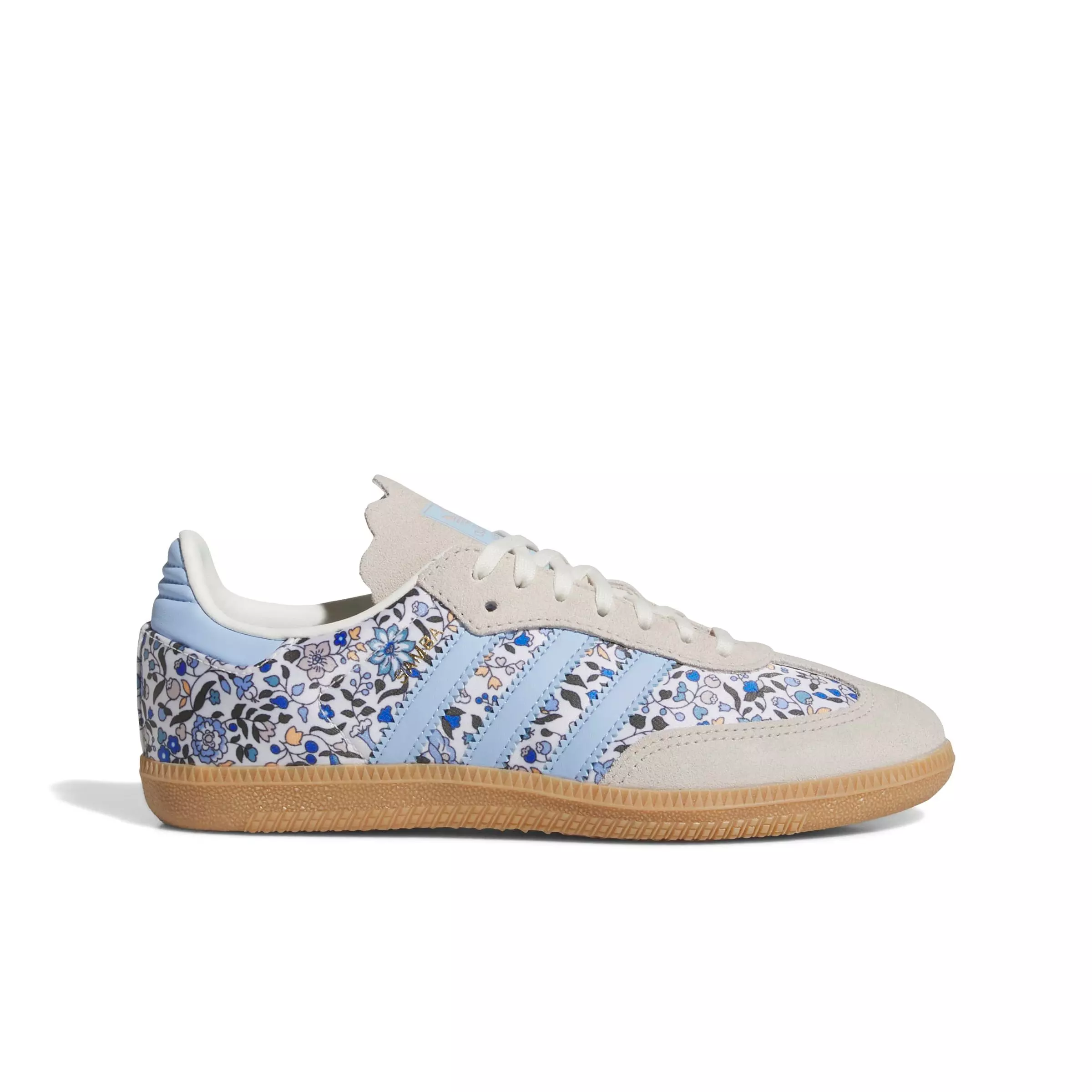 Inspired by a timeless indoor trainer, the adidas Originals Samba OG x Liberty London "Off White/Gum" Grade School Girls' Shoe blends vintage sport style with Liberty’s signature floral artistry. Serrated 3-Stripes, an iconic T-toe, and a classic gum outsole set the foundation, while the floral-lined interior and Liberty branding add a collectible twist.