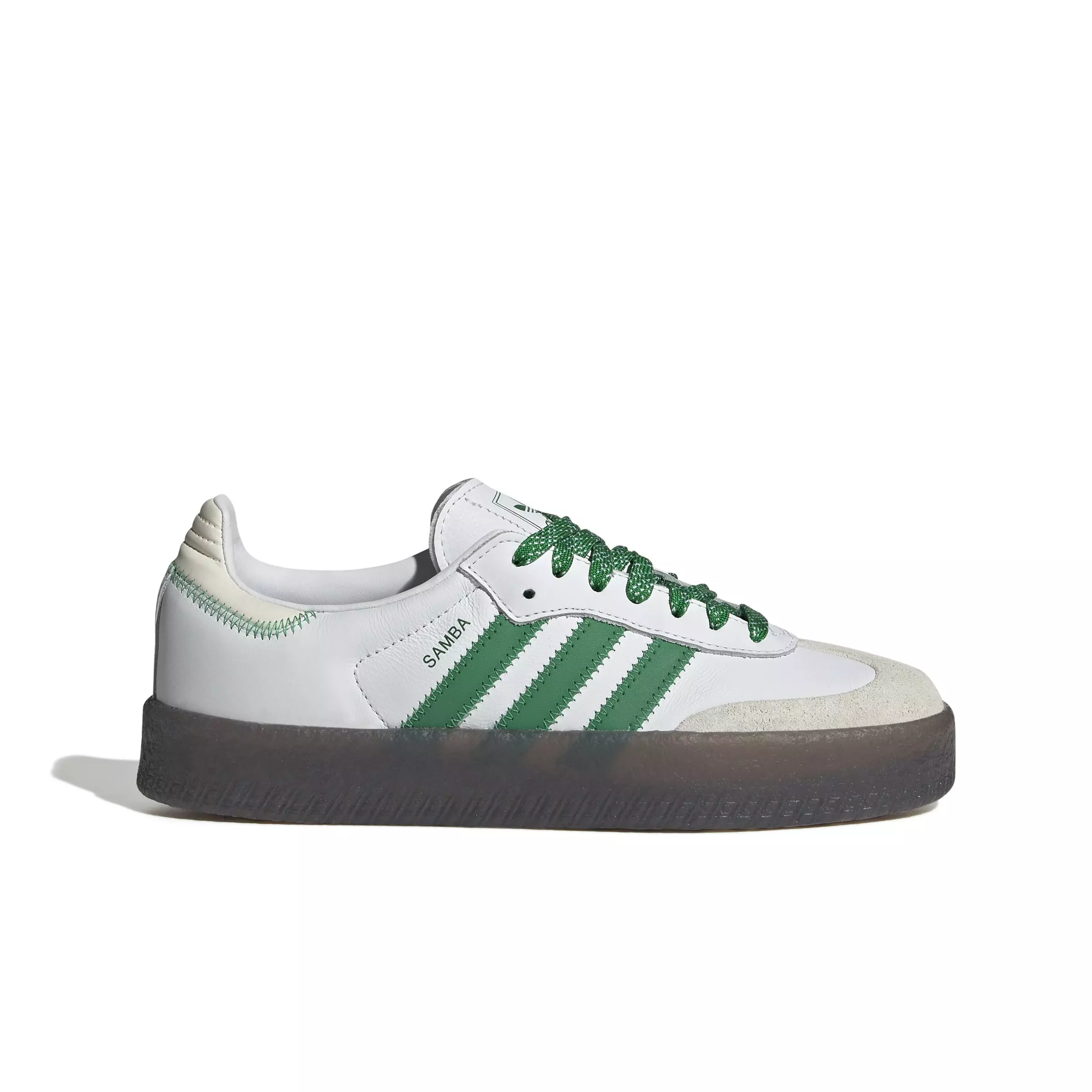 A fresh take on a timeless classic, the adidas Originals Sambae "Ftwr White/Green/Off-White" Women's Shoes offer a blend of sport and lifestyle for the modern woman. Featuring an elevated rubber tooling with a gum aesthetic and reworked upper, these shoes bring a contemporary touch to the iconic Samba franchise. An update include leather stripes with overlock stitching and colour accents, creating an appealing blend of tradition and innovation. Lace up in style with these comfortable low-top shoes crafted from a mix of leather, synthetics, textile, and rubber.