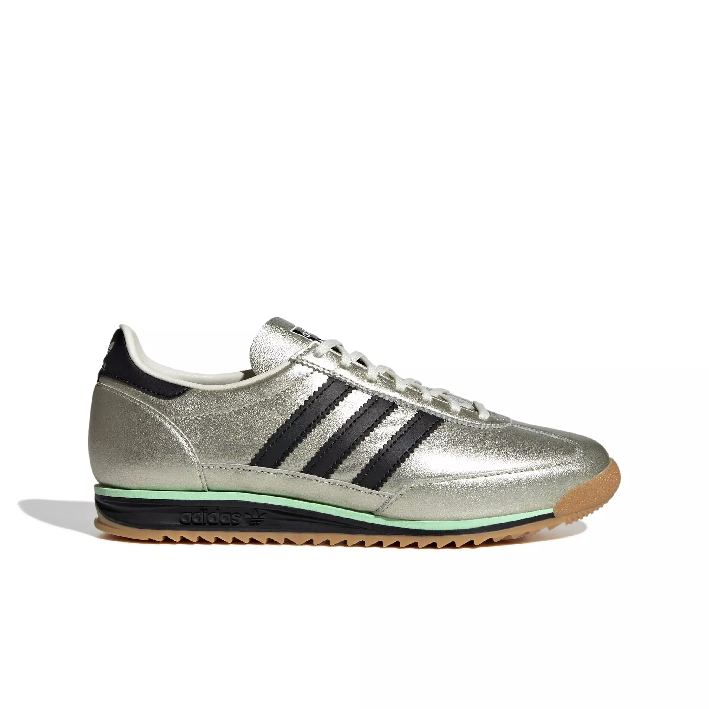 The adidas Originals SL 72 OG "Off White/Core Black/Gum 1" Women's Shoe channels the 1972 icon with a modern refresh. A metallic leather upper pairs with classic leather 3-Stripes and a heritage heel tab for a timeless look that moves effortlessly from track roots to everyday style.