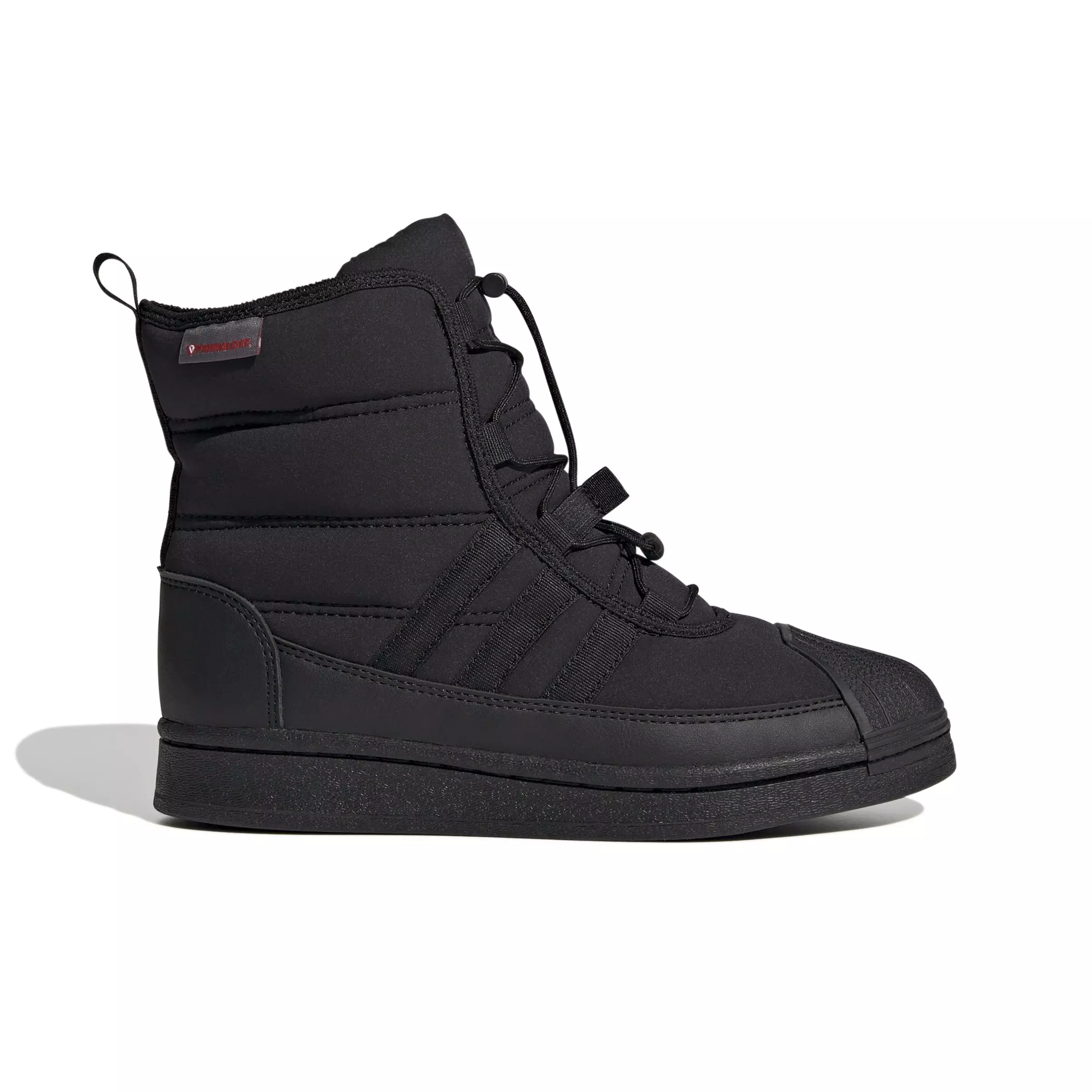 The timeless adidas Superstar sneakers inspired these cozy and classic adidas Originals Superstar "Core Black/Core Black/Ftwr White" Grade School Boys' Boot. They capture the best design details of their namesake, like the iconic shell toe and 3-Stripes. The platform midsole adds a little lift, and a padded collar delivers comfortable ankle support with every step. Simple style just stepped it up. Made with a series of recycled materials, this upper features at least 50% recycled content. This product represents just one of our solutions to help end plastic waste.Features